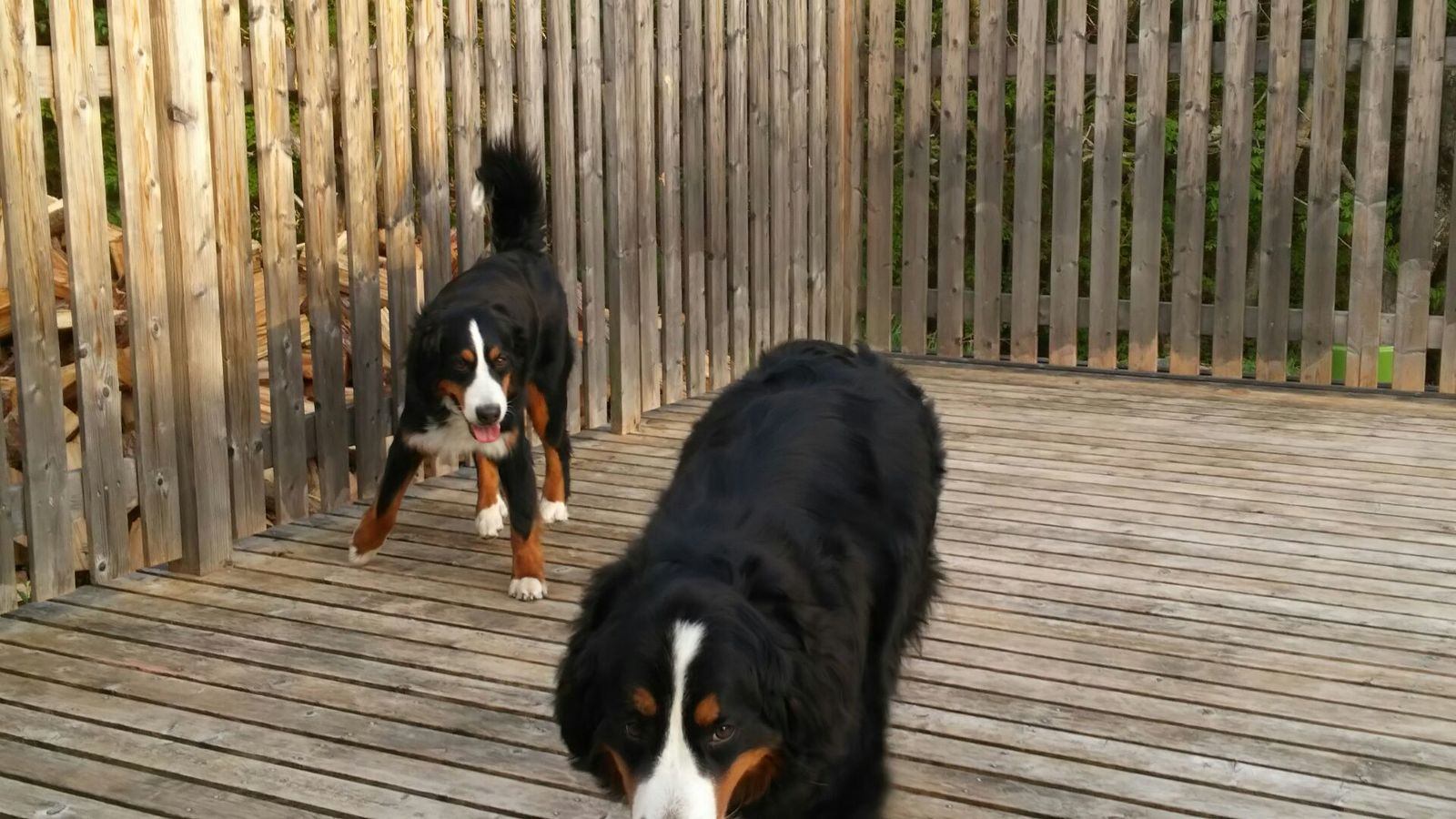 常連さんのバーニーズ親子シンディちゃんとリンクくんがチェックインしました。