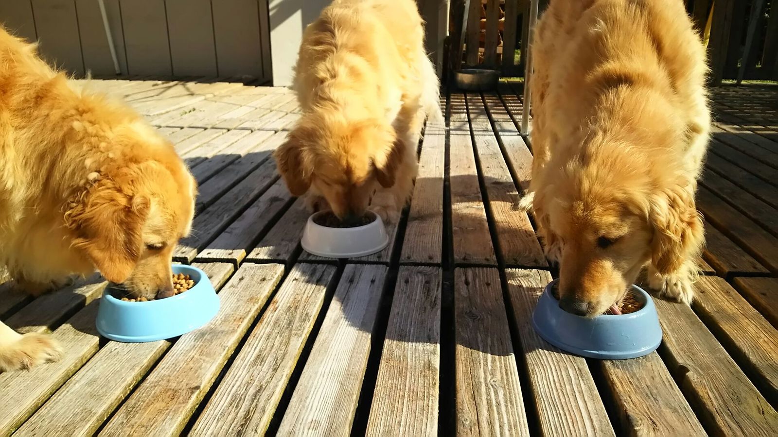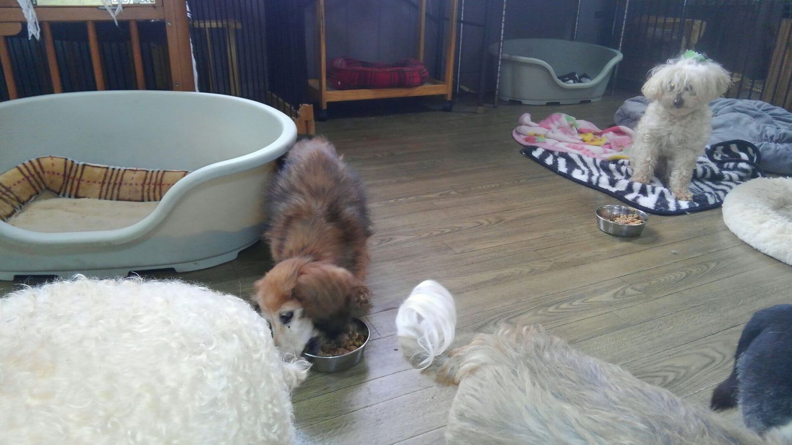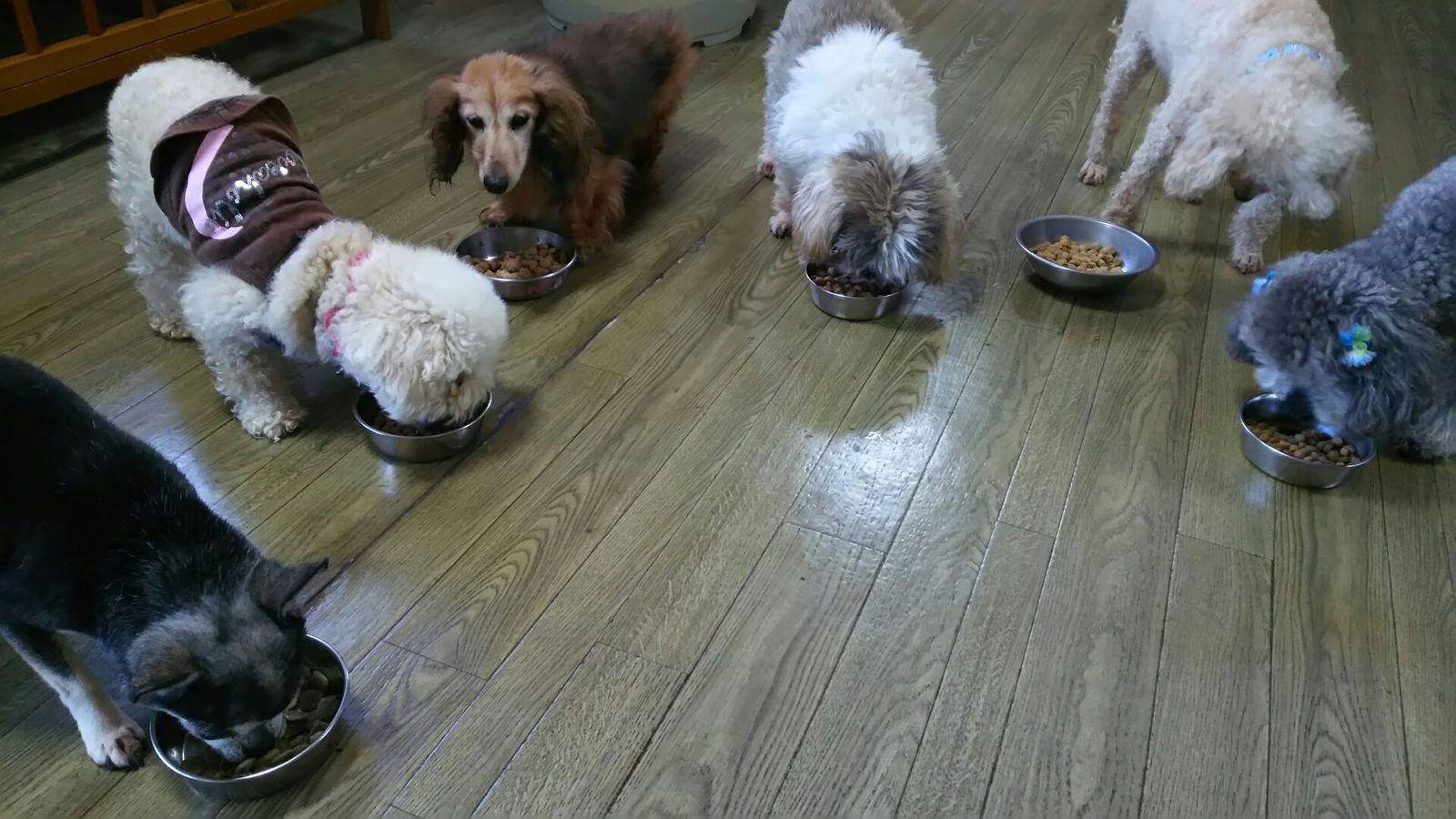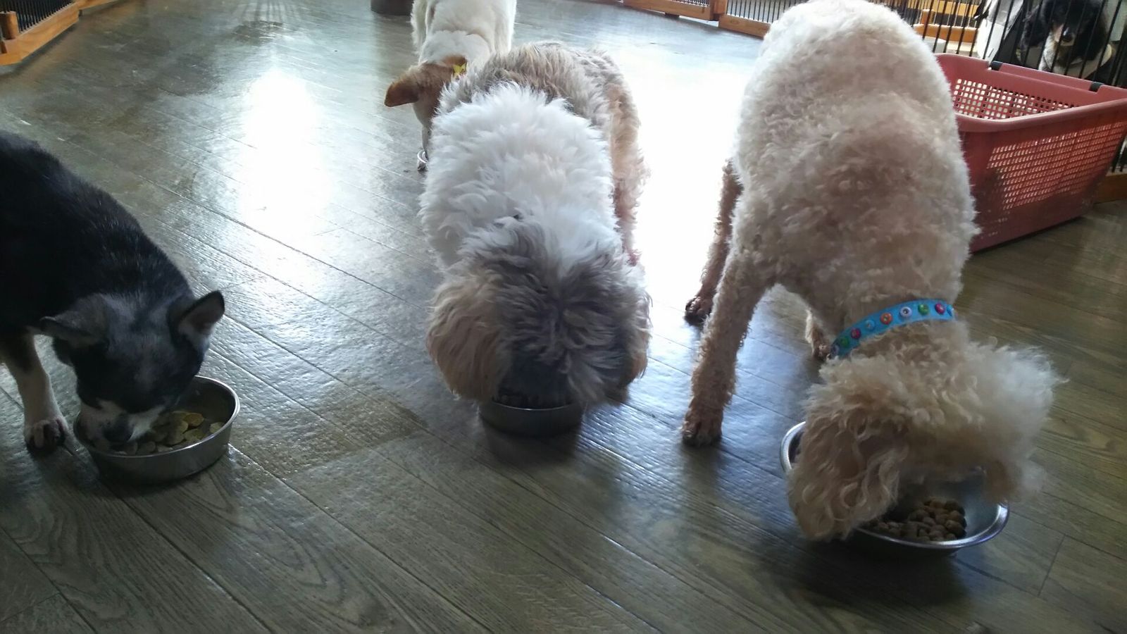 長期預かりゴールデンズのジョジョ君と小太郎君、キャバリア大吉君とミックスラッキーちゃん、しっかり完食しました。