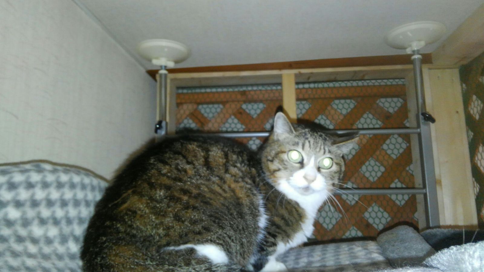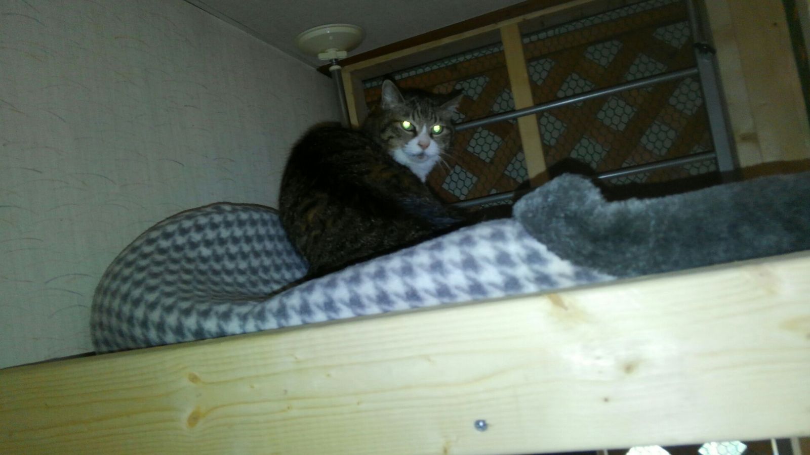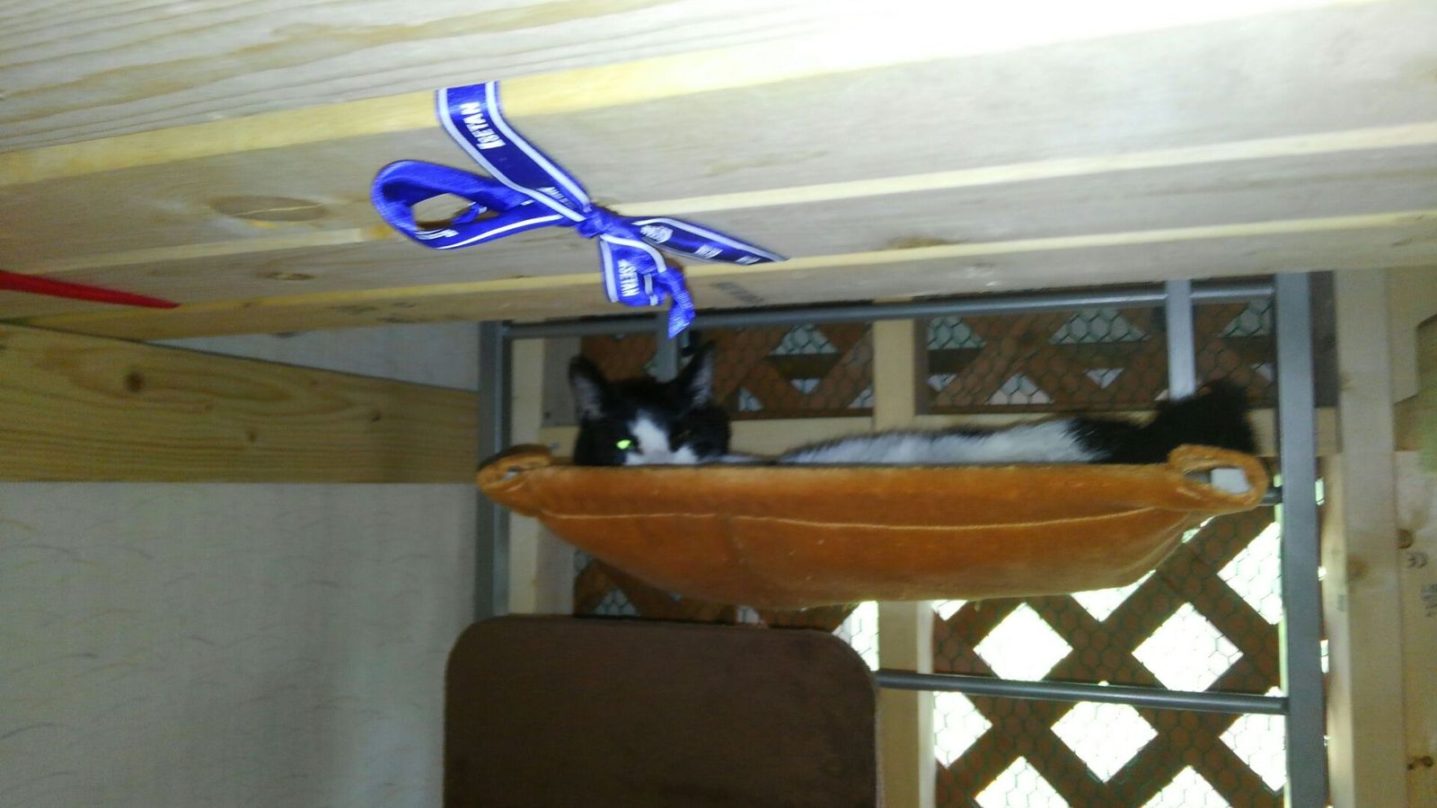 ロビー君、夕方は隠れずにハンモックからこちらを見てました。