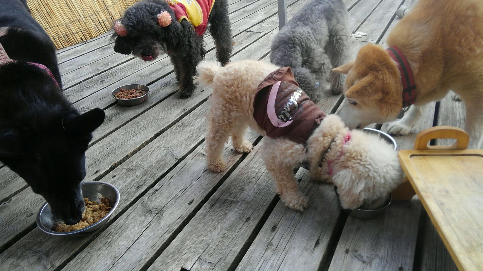 生涯預かりチワワ姫ちゃんとビオラちゃん、トイプーテディ君とベラちゃん、しっかり完食しました。