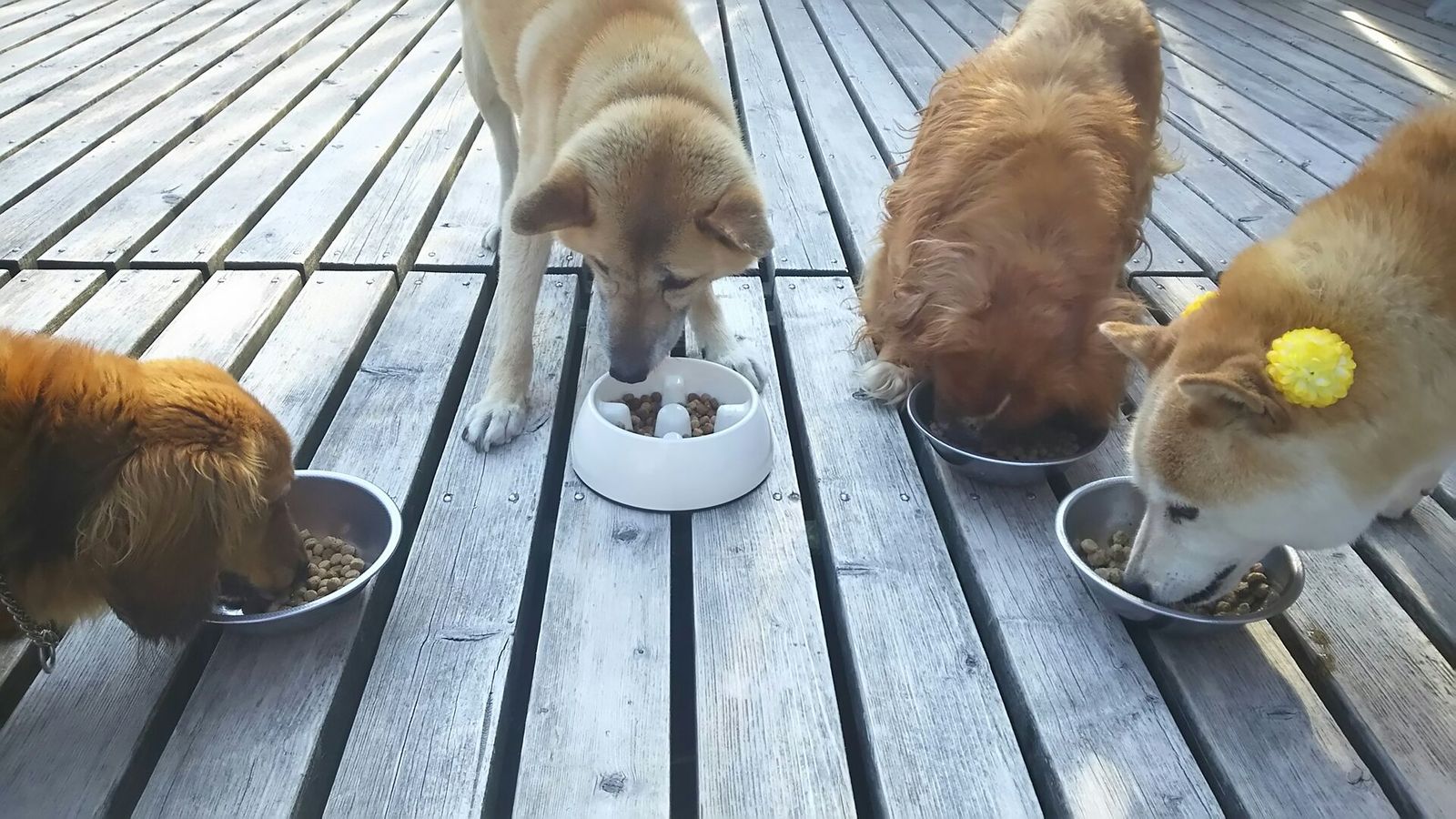 長期預かりゴールデンズのジョジョ君と小太郎君、キャバリア大吉君とミックスラッキーちゃん、しっかり完食しました。