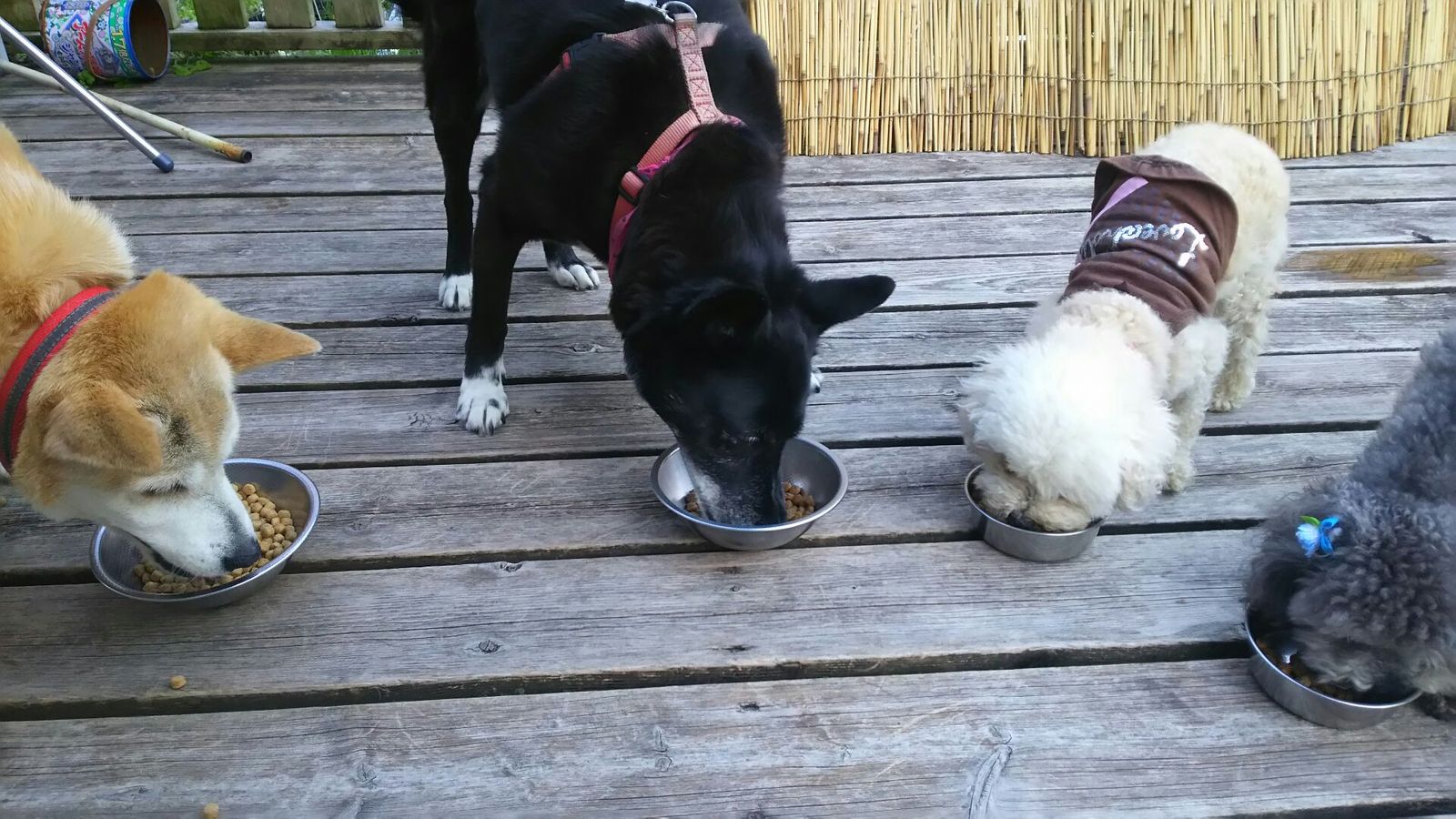 生涯預かり柴凛ちゃんとミックスちびちゃん、ダックスティラミス君とロッキー君とラブ君、しっかり完食しました。