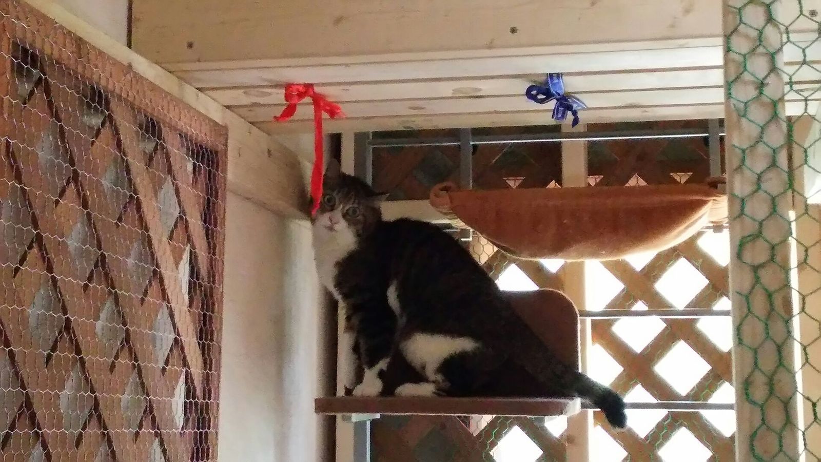 マリちゃんは下のハウスにいました。 スタッフが入っていくと上へ。 ホットカーペットを使ってくれているみたいです♪