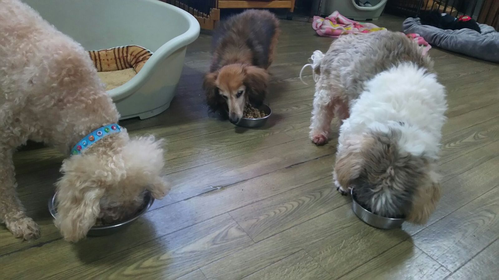 生涯預かりチワワ姫ちゃんとビオラちゃん、トイプーテディ君とベラちゃん、シーズーココ君しっかり完食しました。