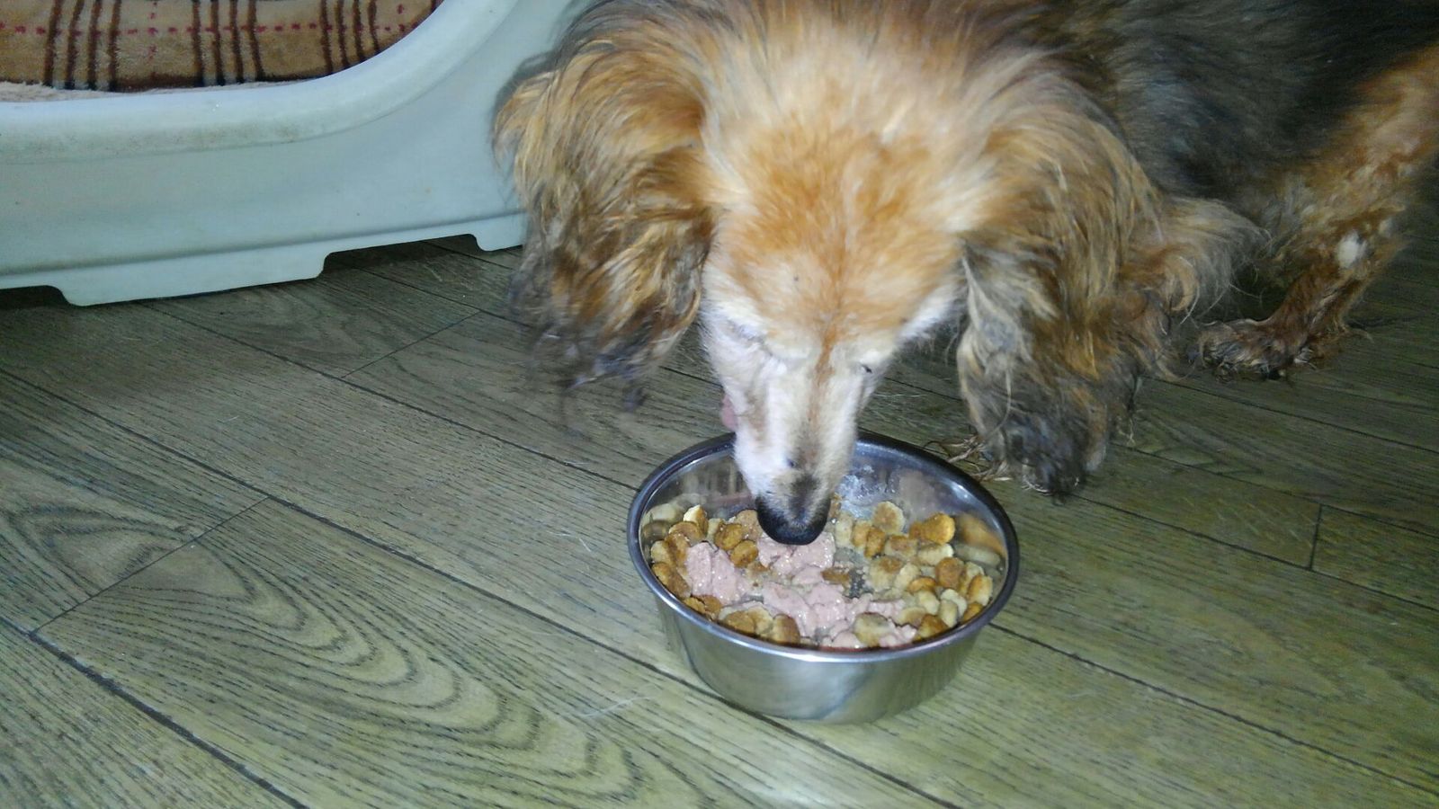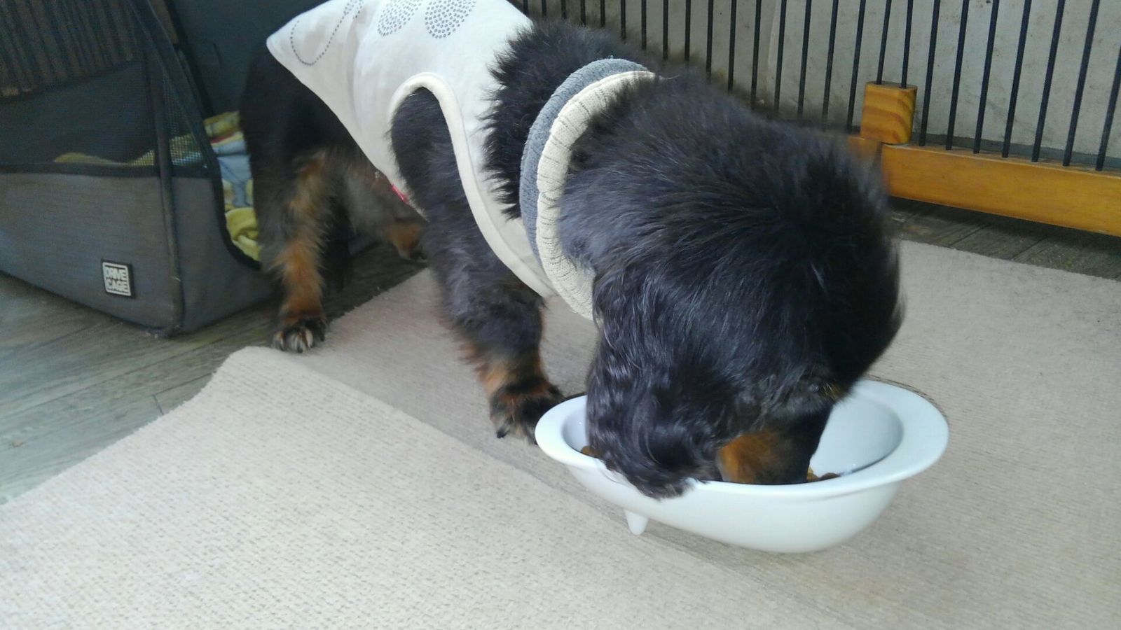 生涯お預かりダックスロッキー君、ミックスちびちゃんしっかり完食しました。