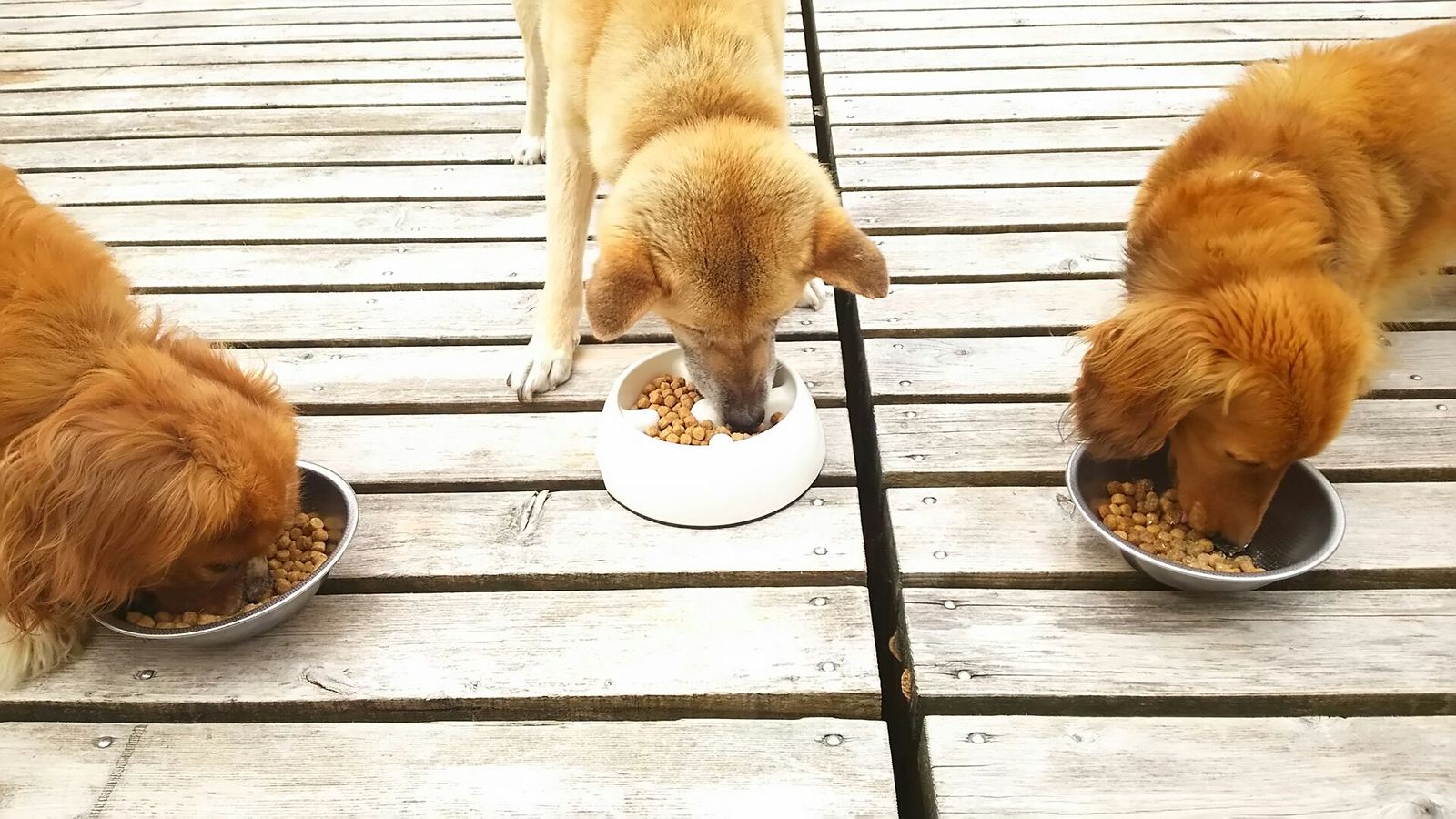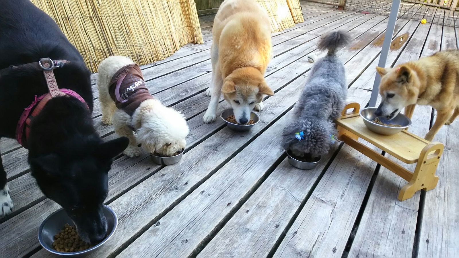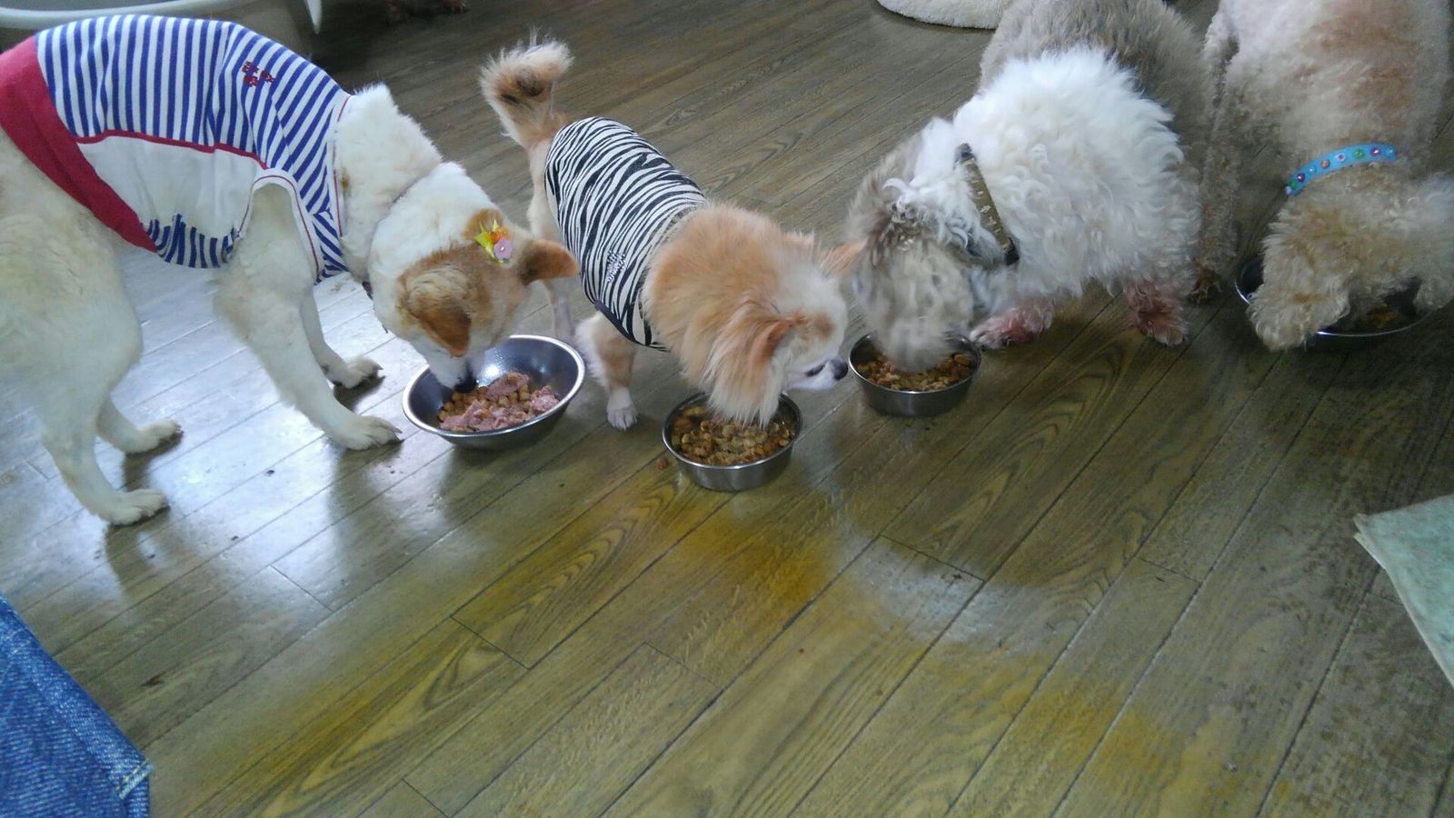 長期預かりゴールデンズのジョジョ君と小太郎君、キャバリア大吉君とミックスラッキーちゃんとくりっぷちゃん、しっかり完食しました。