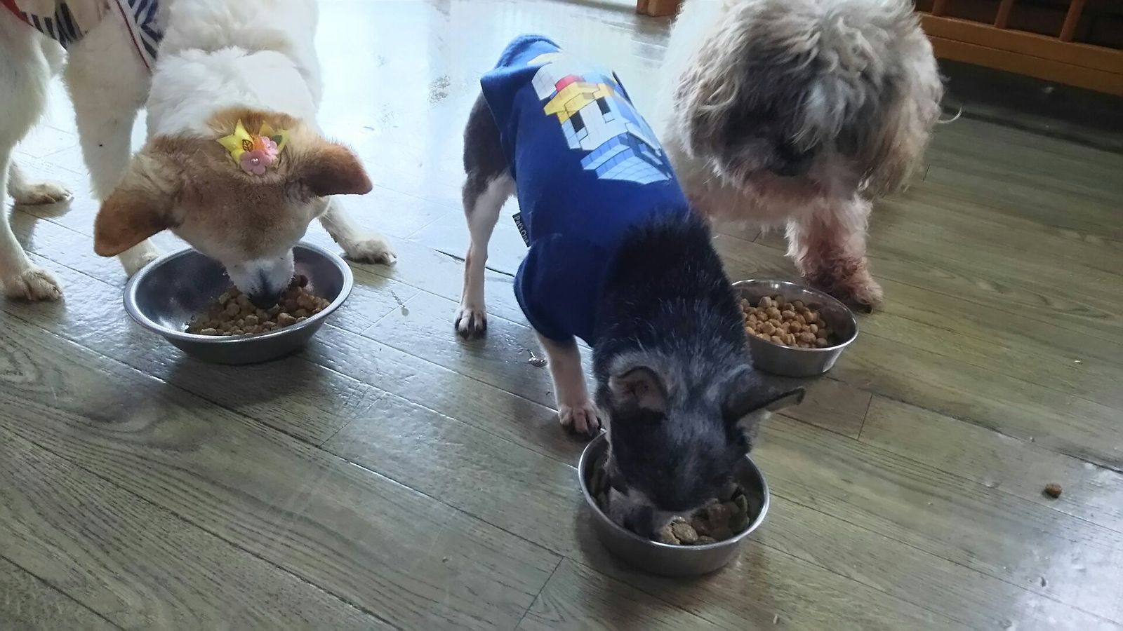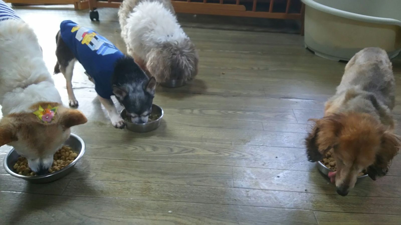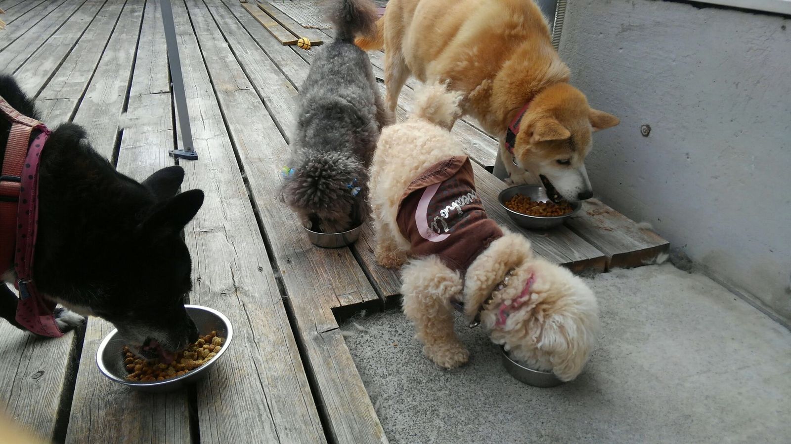 生涯預かり柴凛ちゃんとミックスちびちゃん、ダックスティラミス君とロッキー君とラブ君、しっかり完食しました。