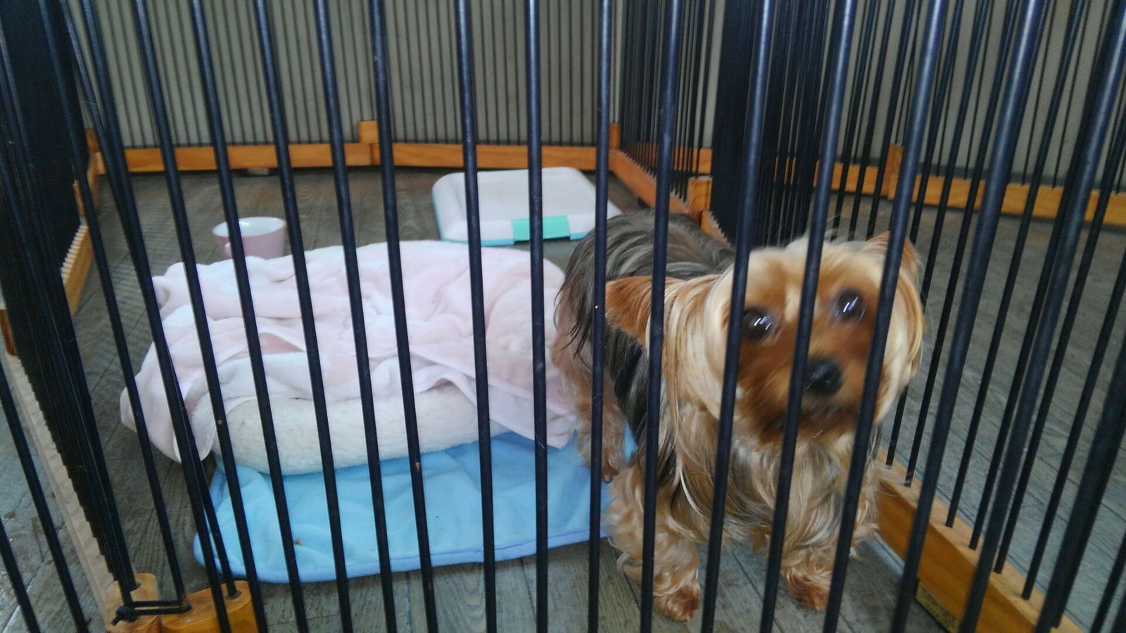常連ヨーキーのミニーちゃんがチェックインしました。 今日も9月に向けての練習です。