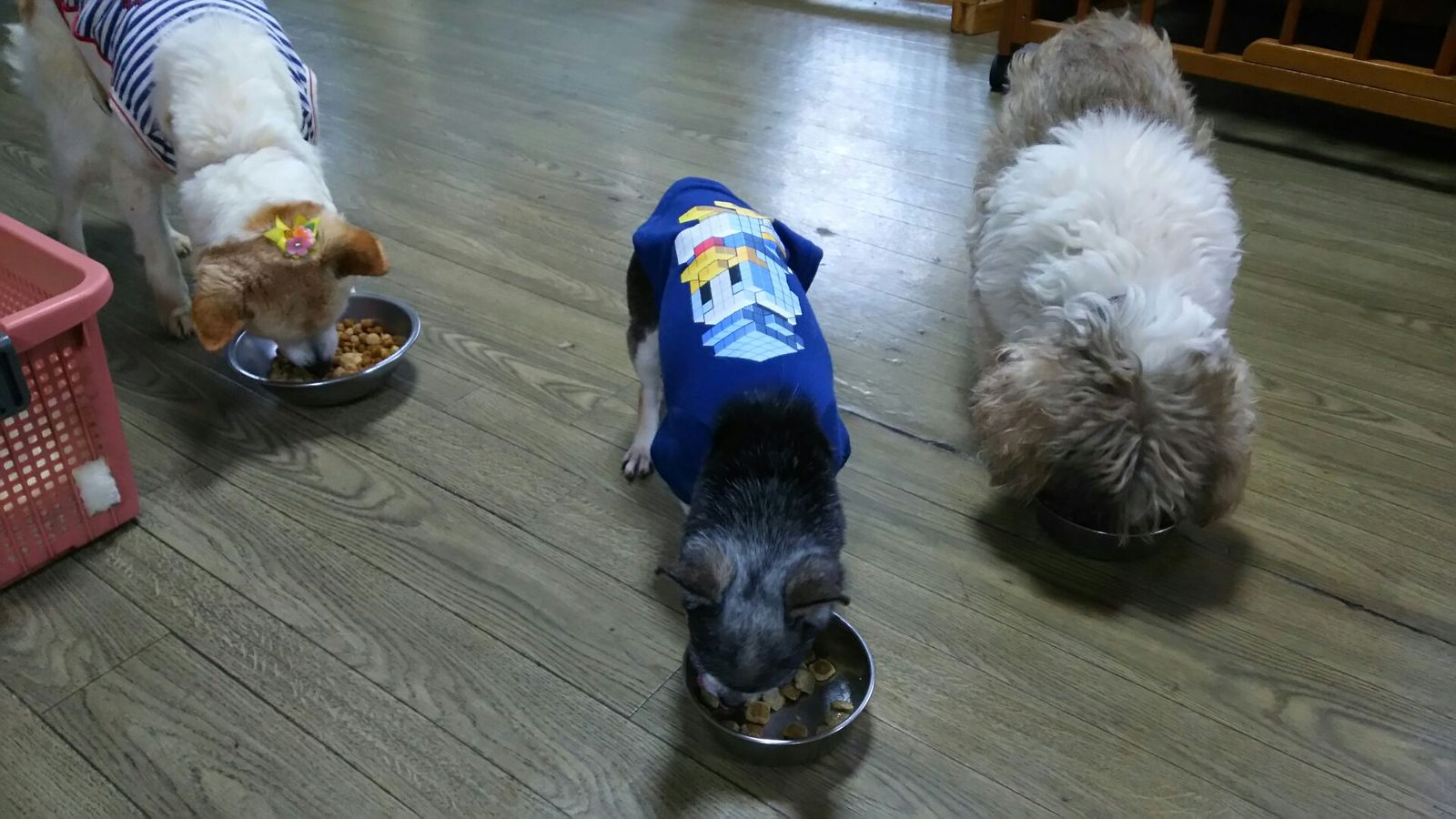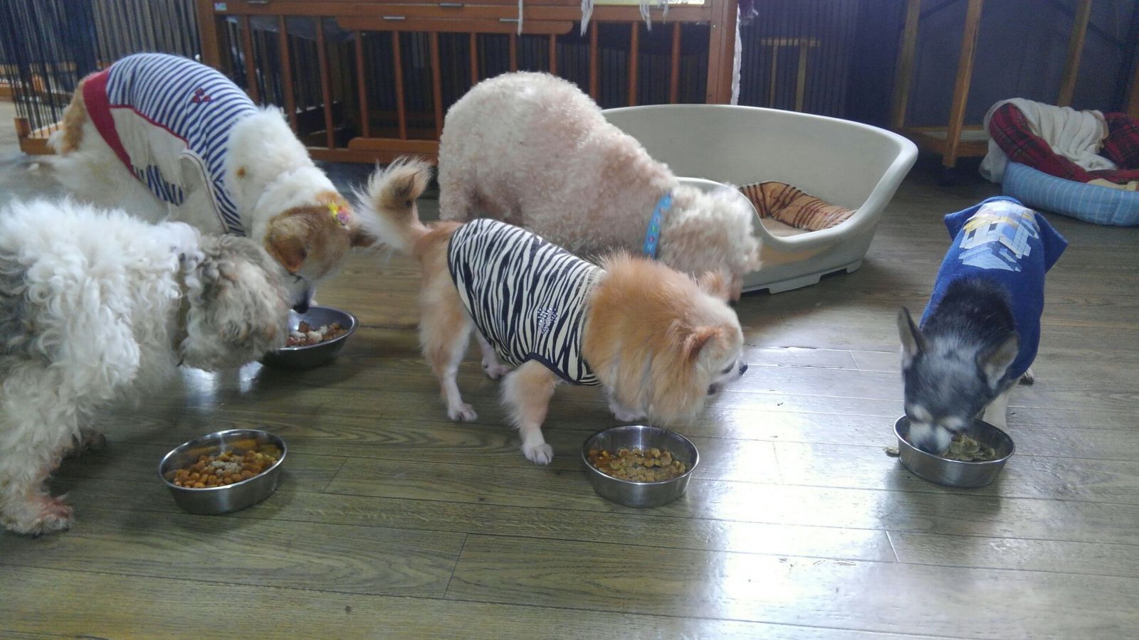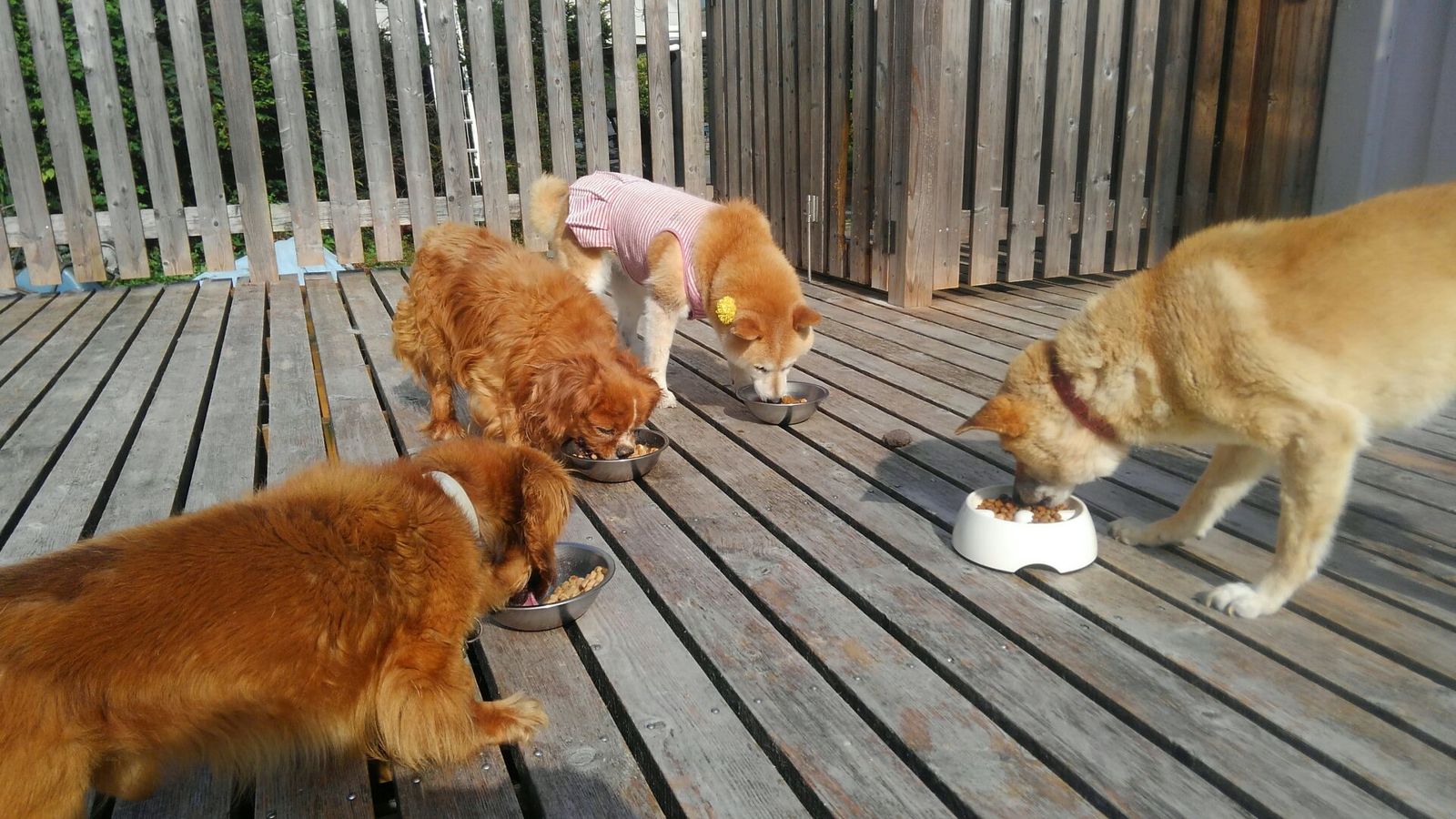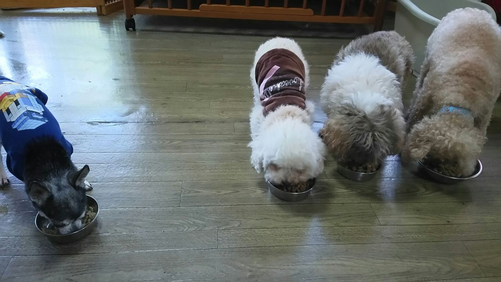 生涯預かりチワワ姫ちゃんとビオラちゃん、シーズーココ君とミックスキュウちゃん、しっかり完食しました。