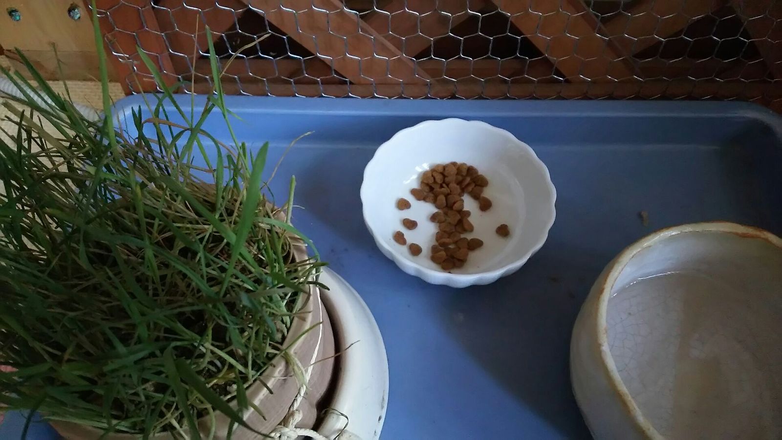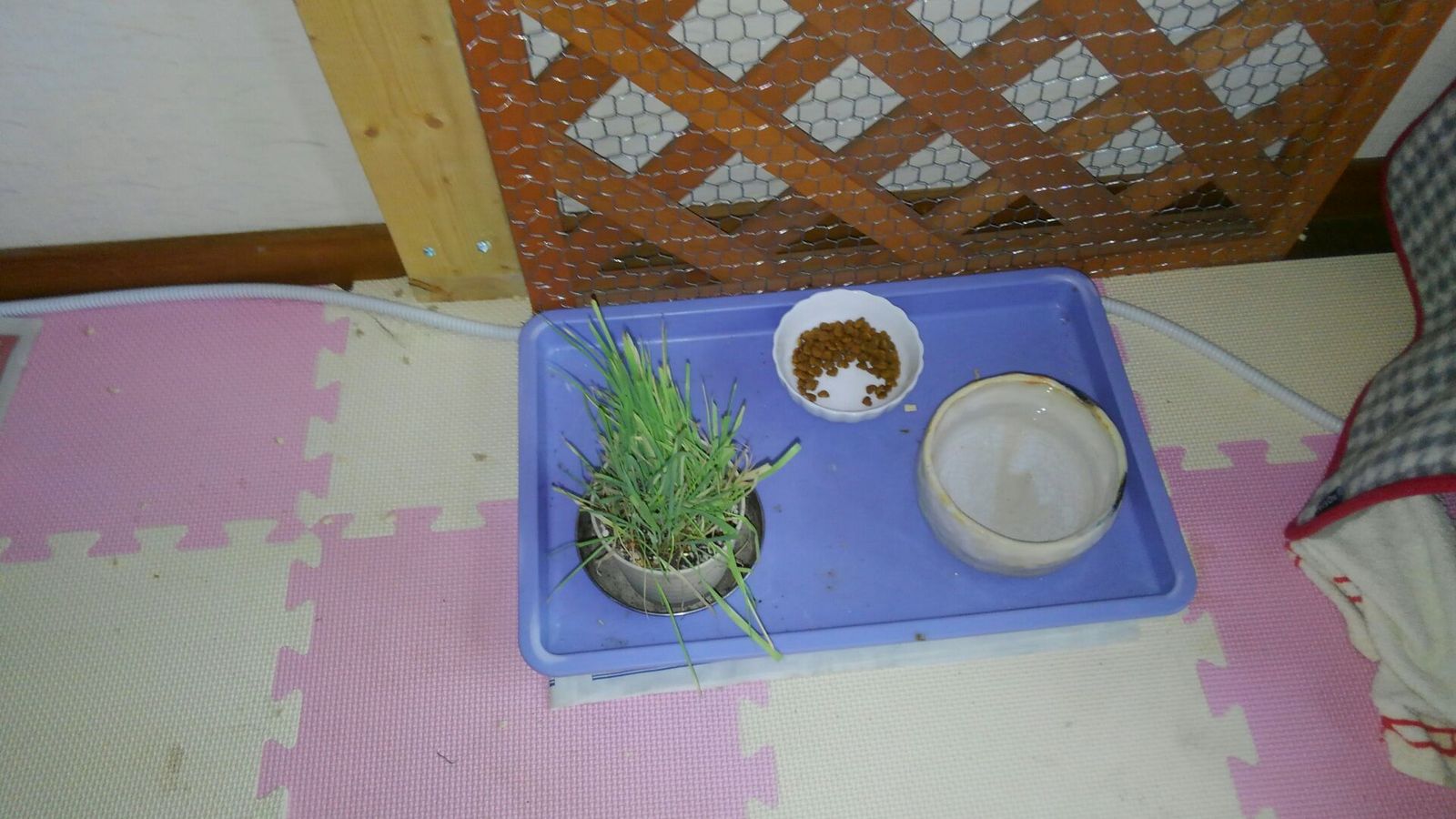 上のハウスの上にゲーゲーがありました。 取ろうと思ったらギーと怒っていましたが、無事取れました。 ご飯はほぼ完食してありました。 うんちはしていなく、おしっこのみしてありました。