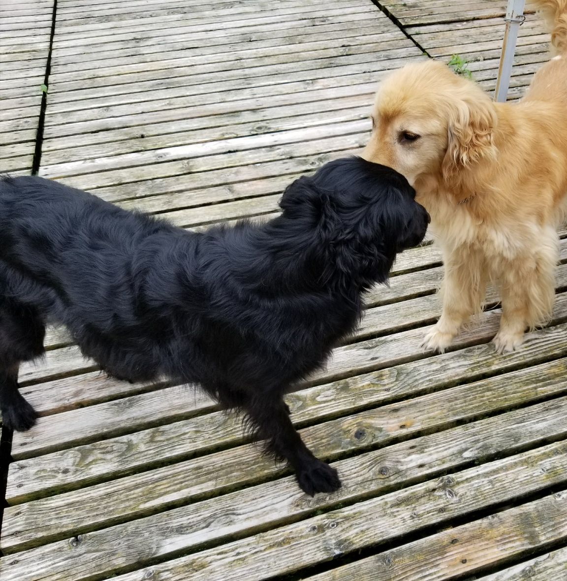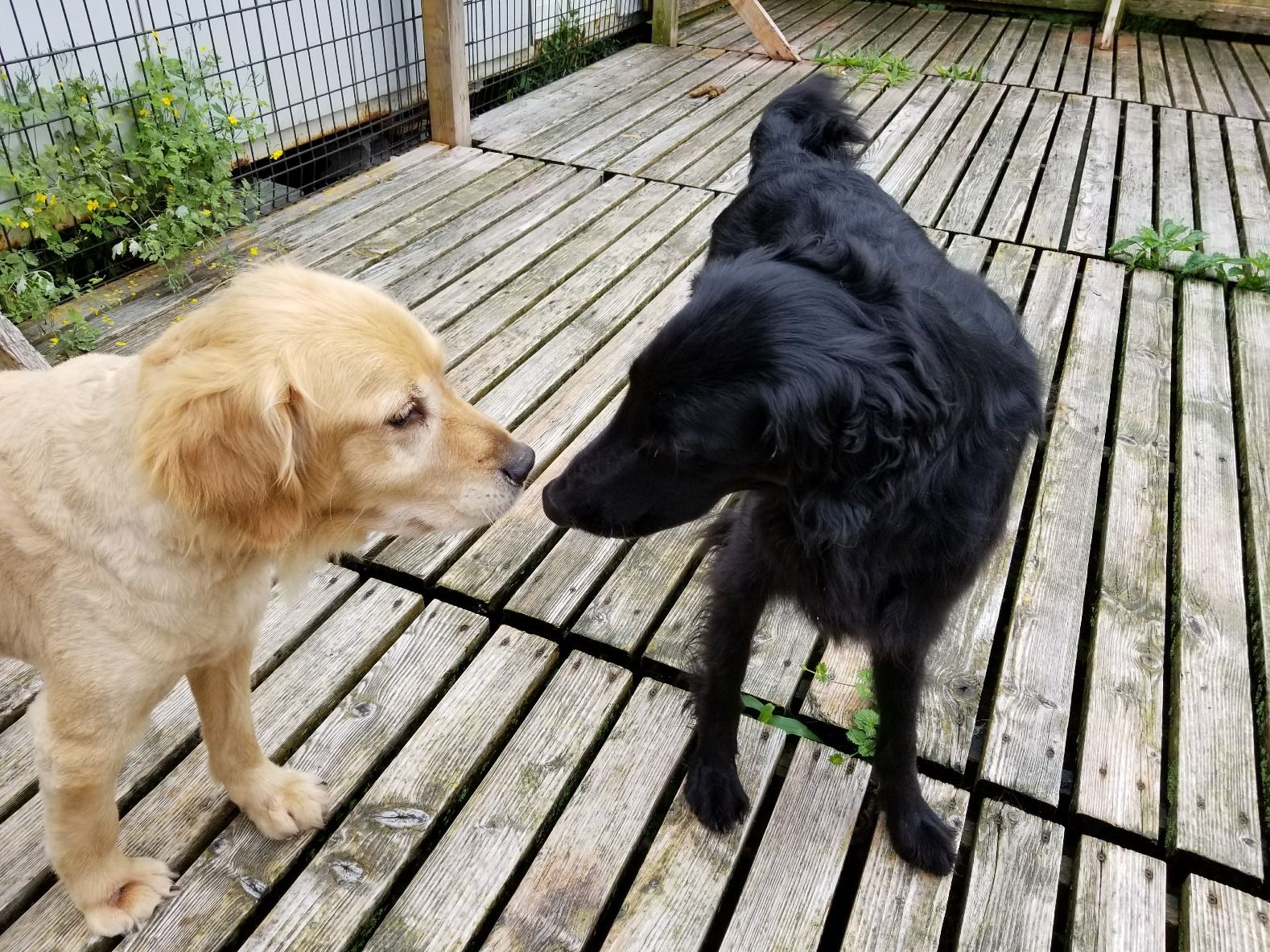 ゴールデンズに会うのは久しぶりですが、自分から寄っていき匂いを嗅いだりしています。