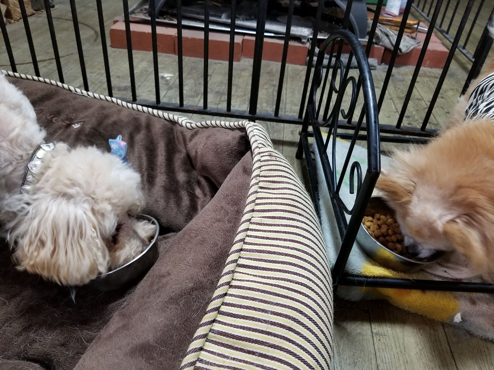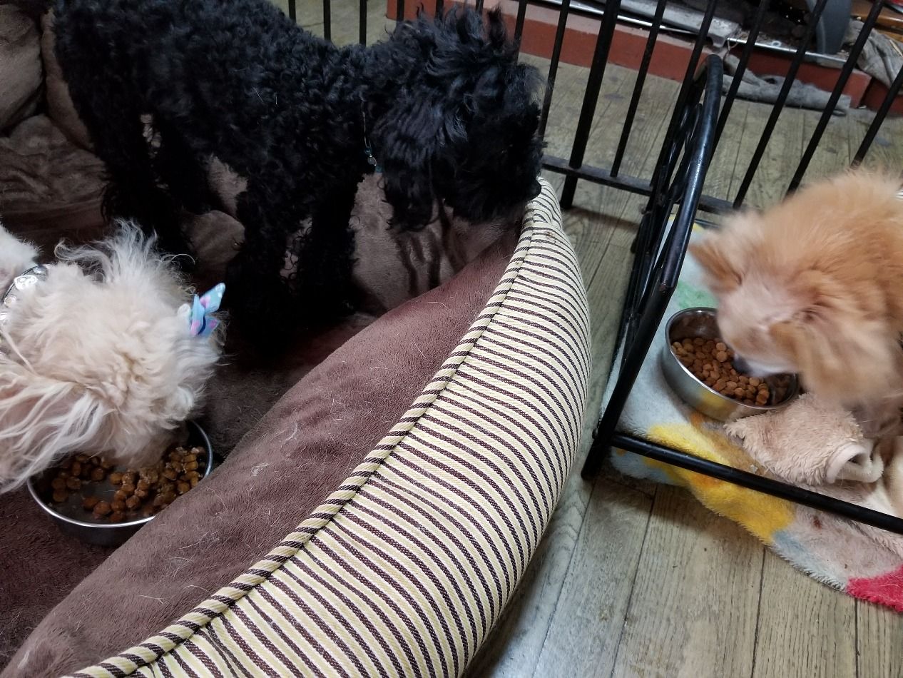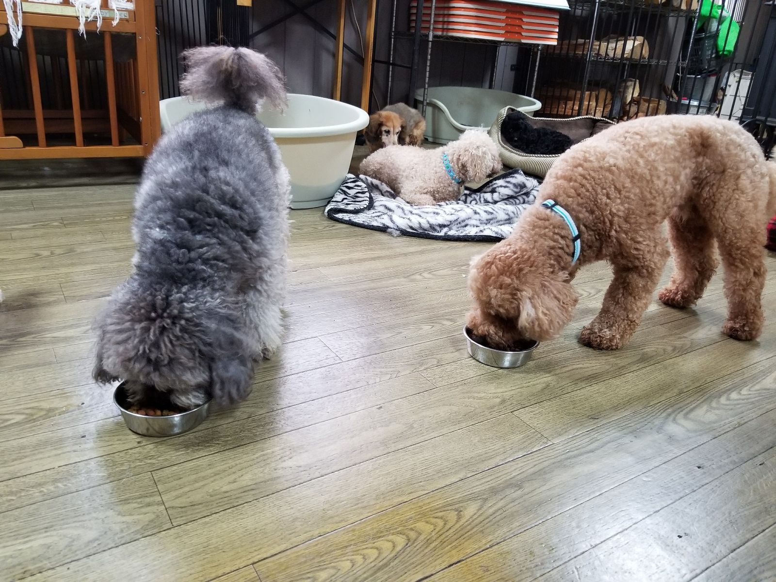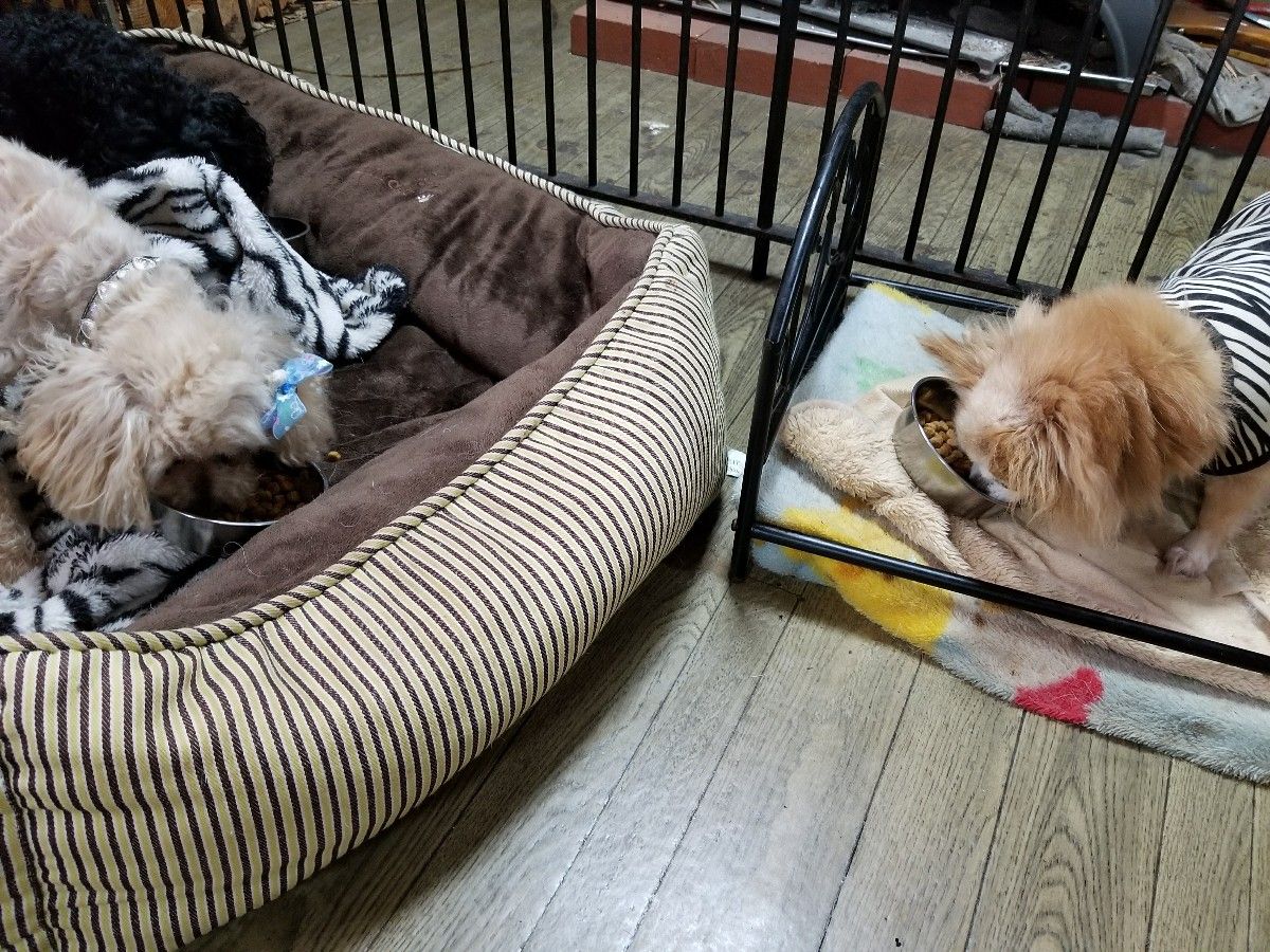 長期お預かりミックスラッキーちゃん、トイプーエジソンくん少しだけ食べました。