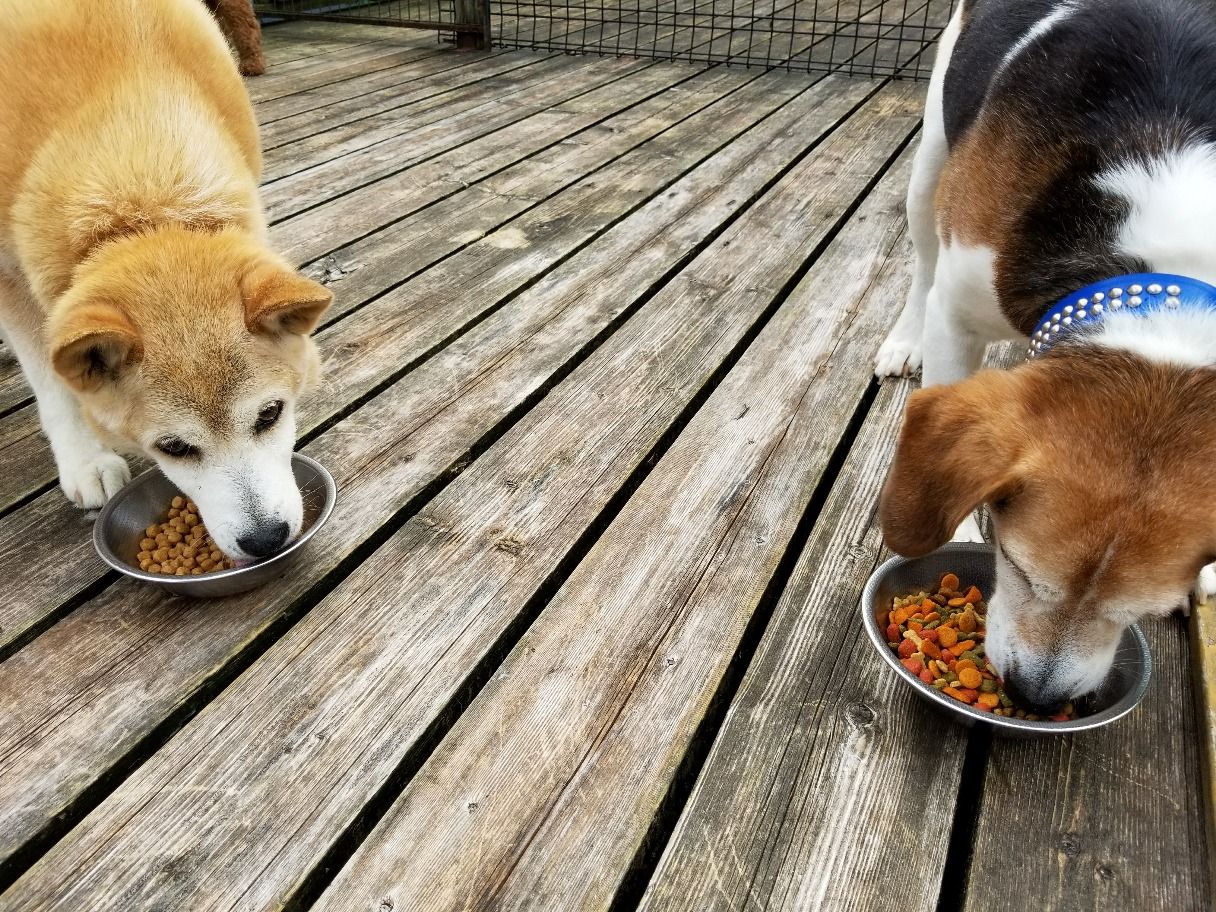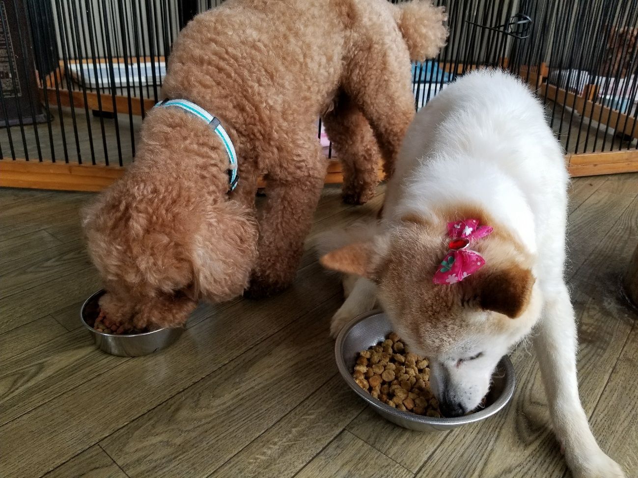 長期お預かりビーグルアンディーくん、ミックスくりっぷちゃんしっかり完食しました。