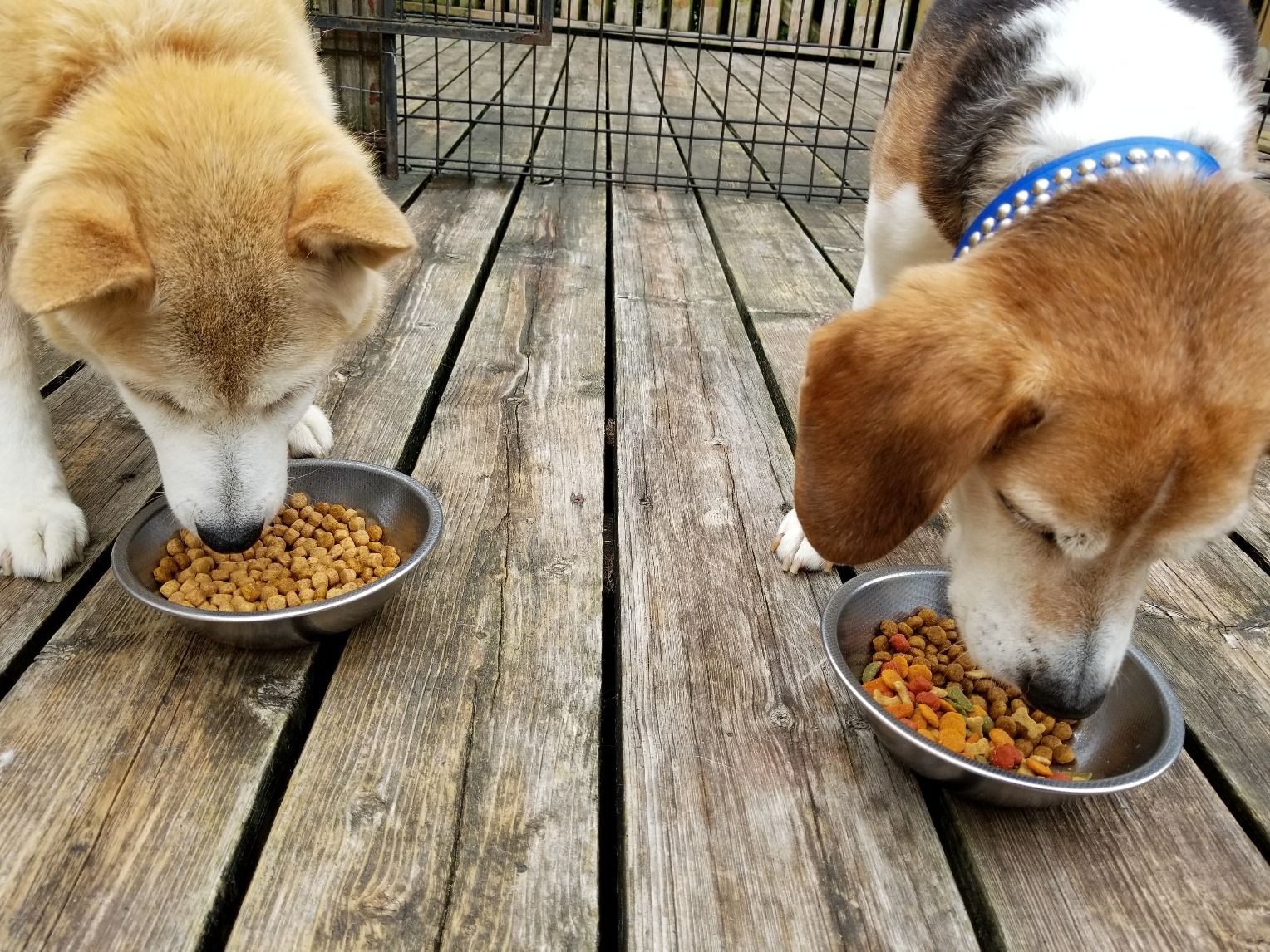 長期お預かりビーグルアンディーくん、ミックスくりっぷちゃんしっかり完食しました。