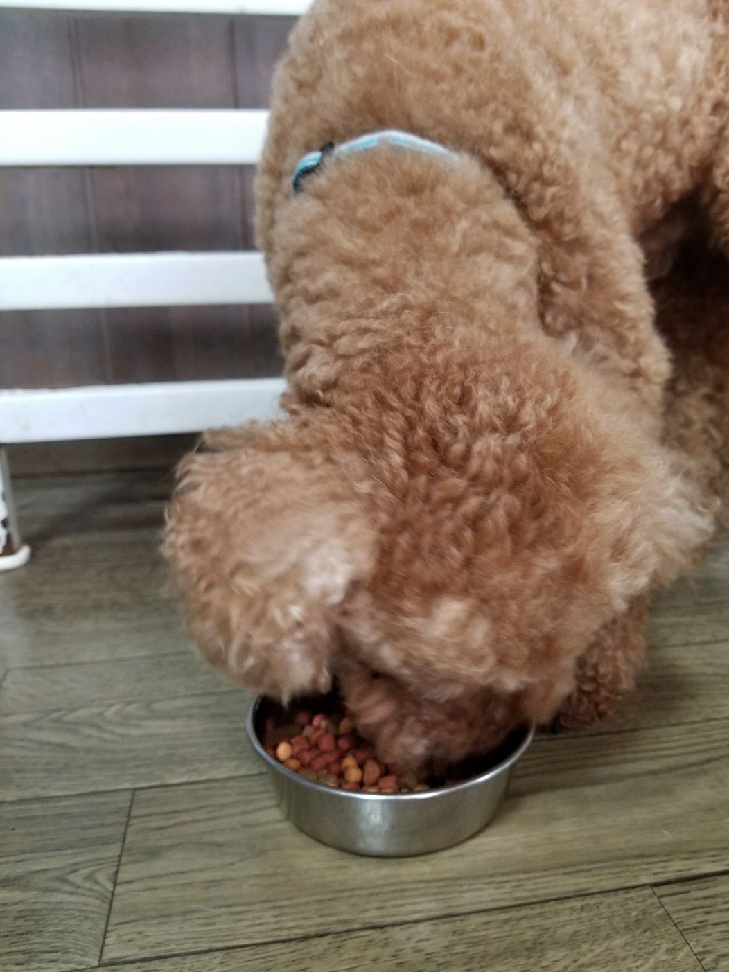 長期お預かりトイプーエジソンくん、ゆずちゃんしっかり完食しました。