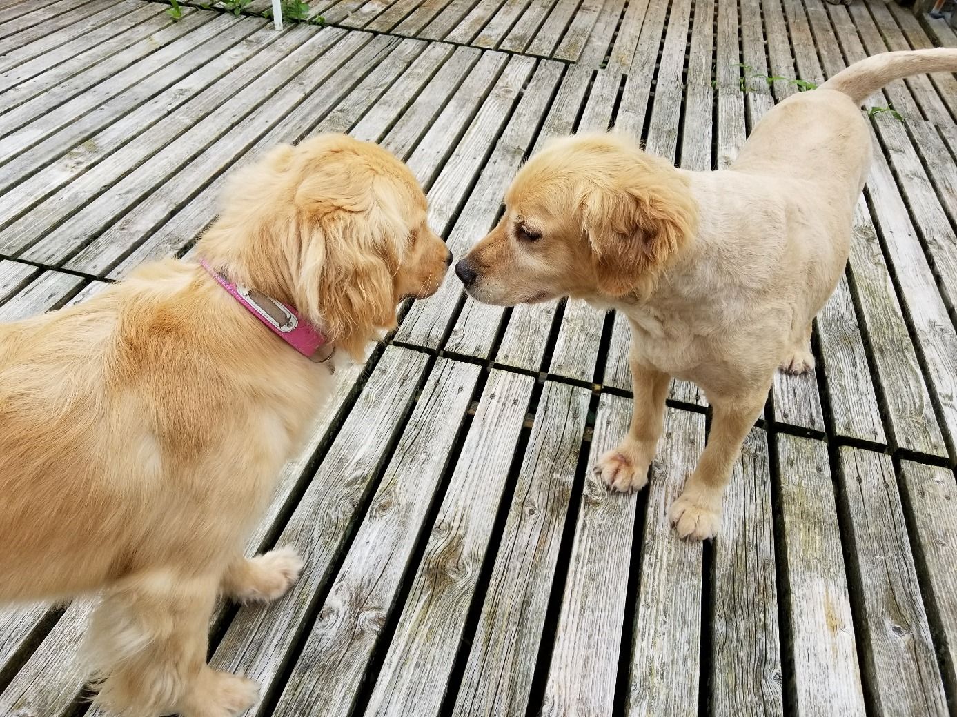 最初は緊張していましたが、少し時間が経つと慣れて小太郎くんの匂いを嗅いだりしています。
