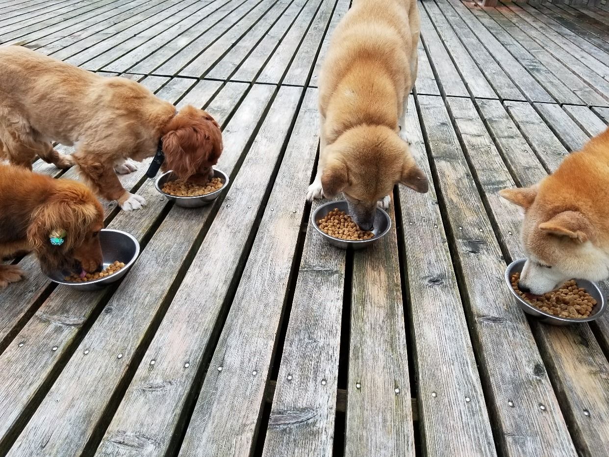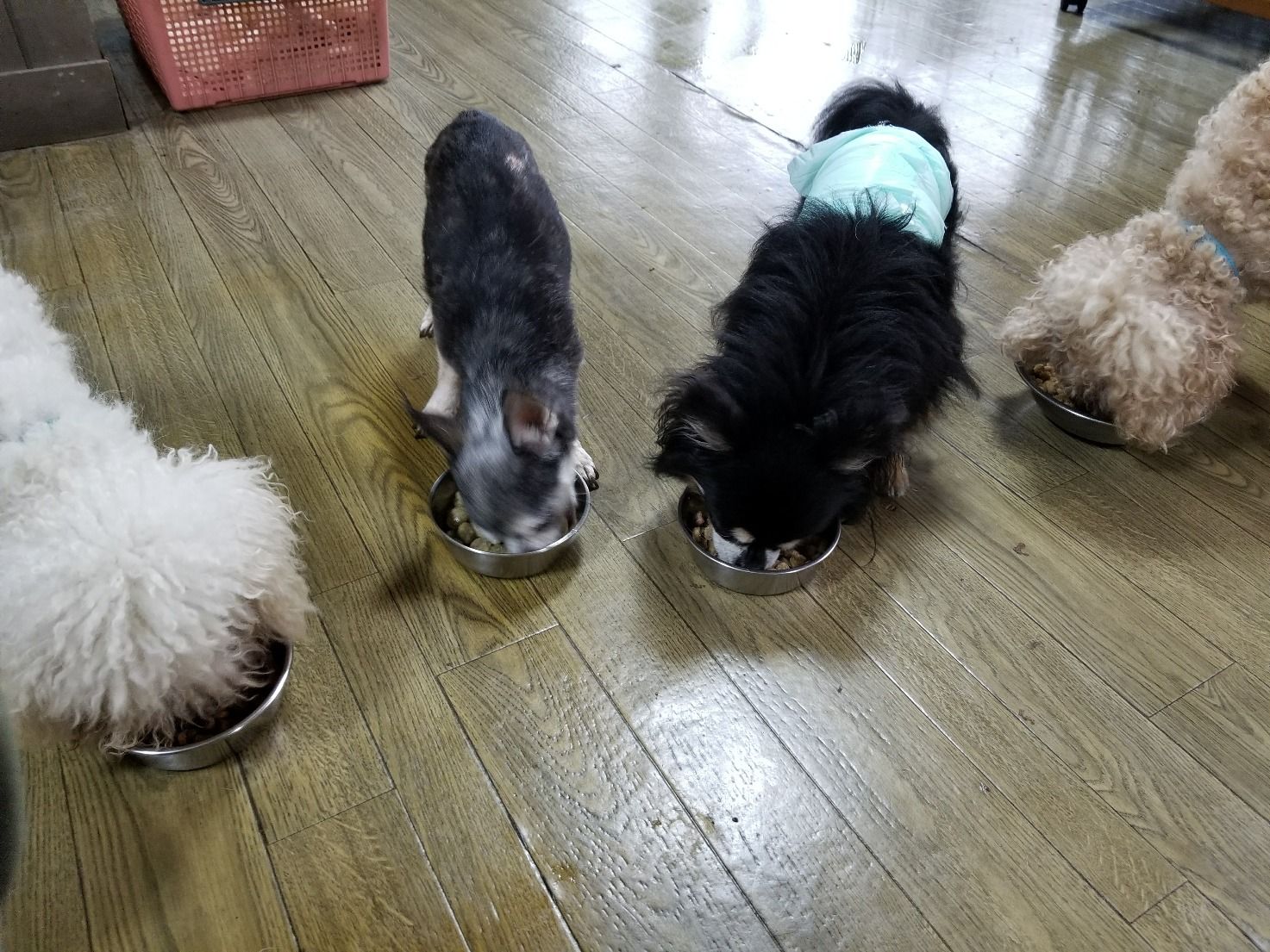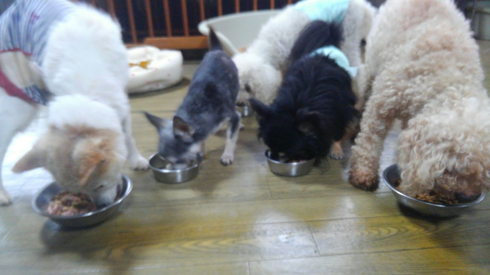 長期預かりトイプーむぅた君とミチゾー君とゆずちゃん、ビーグルアンディ君とチワワバロン君、しっかり完食しました。
