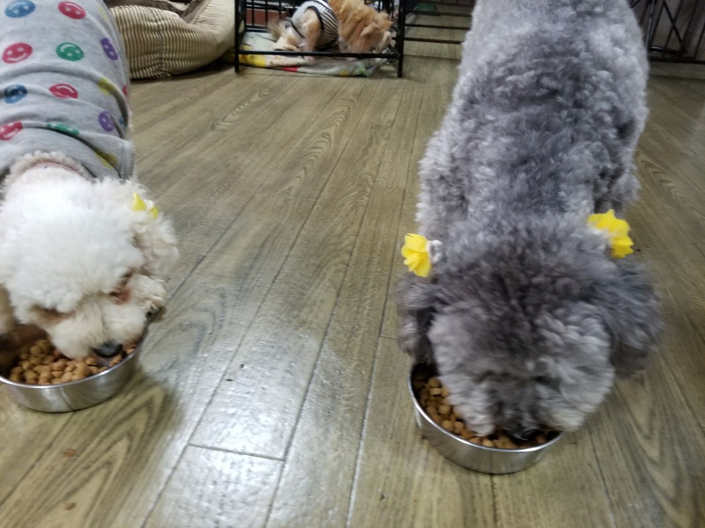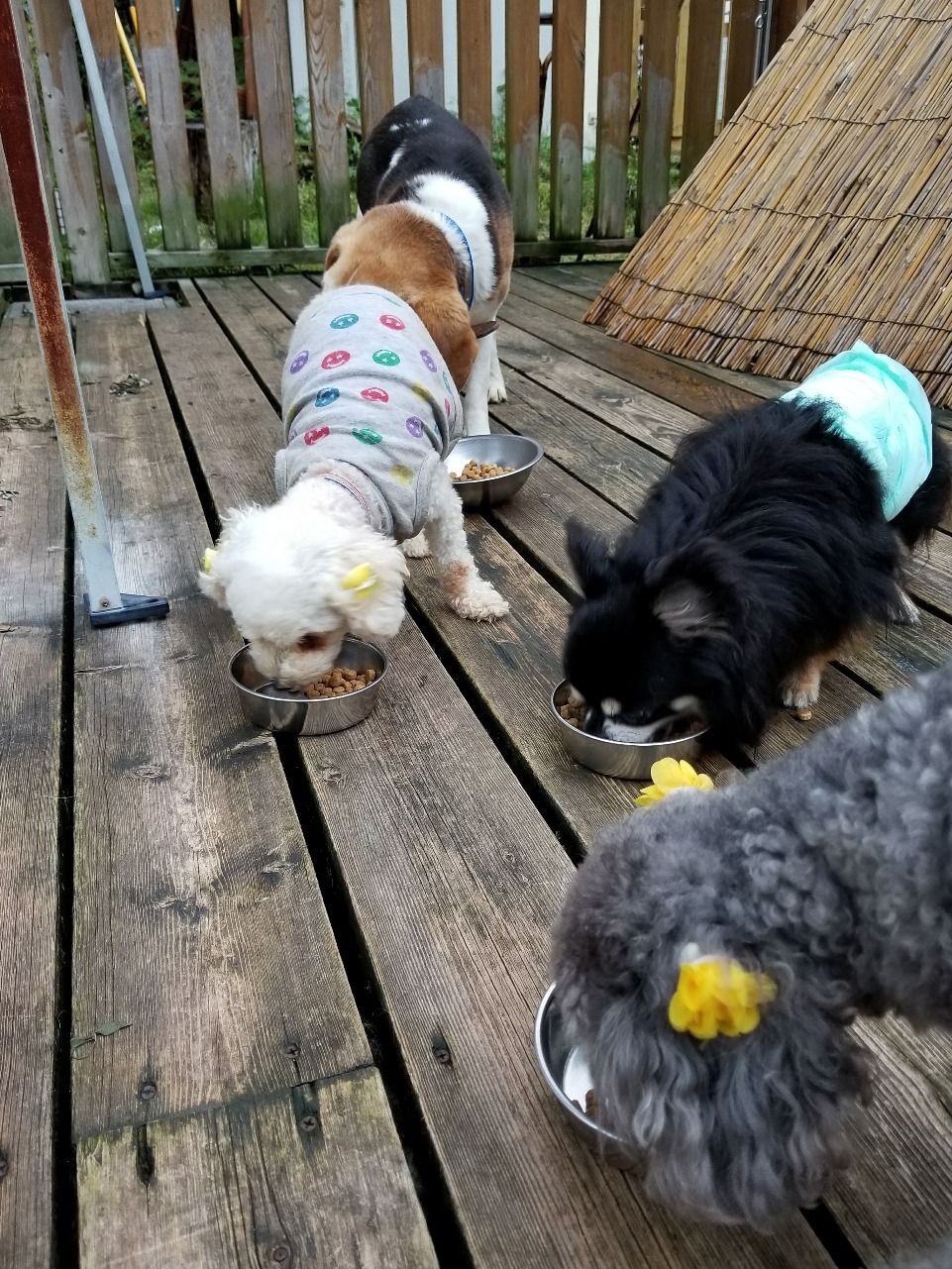 生涯預かりチワワ姫ちゃんとビオラちゃん、トイプーテディ君とベラちゃんとシーズーココ君、しっかり完食しました。