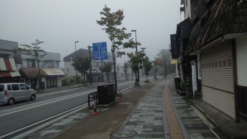 今朝の軽井沢の気温は18℃。天気は霧の軽井沢です。