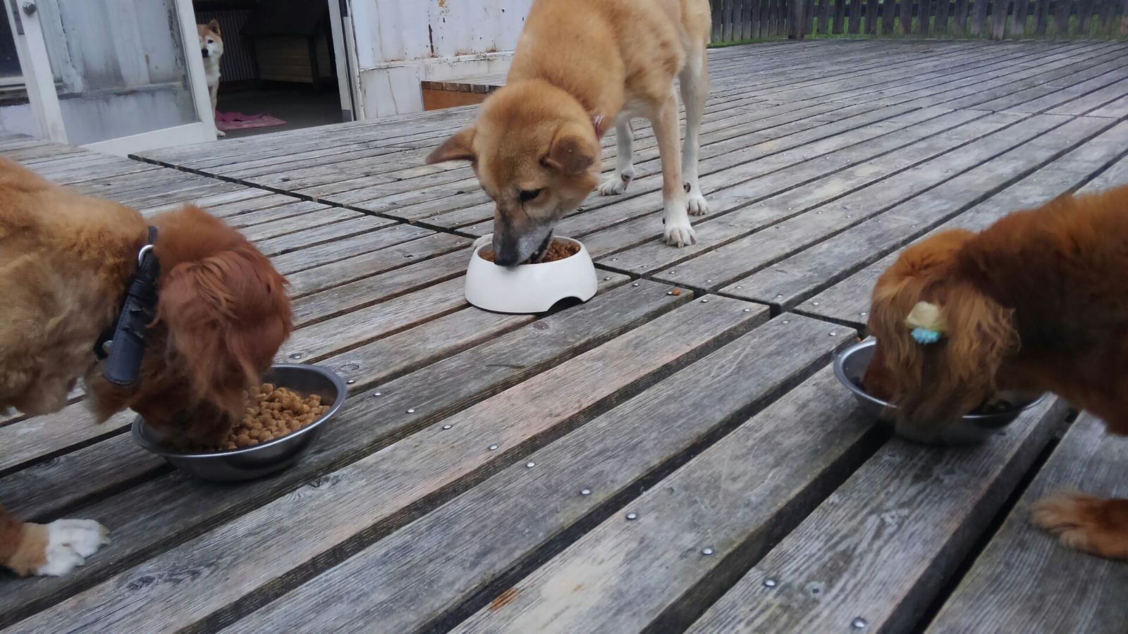 生涯預かり柴凛ちゃんとミックスちびちゃん、ミックスキュウちゃんとのんちゃん、しっかり完食しました。