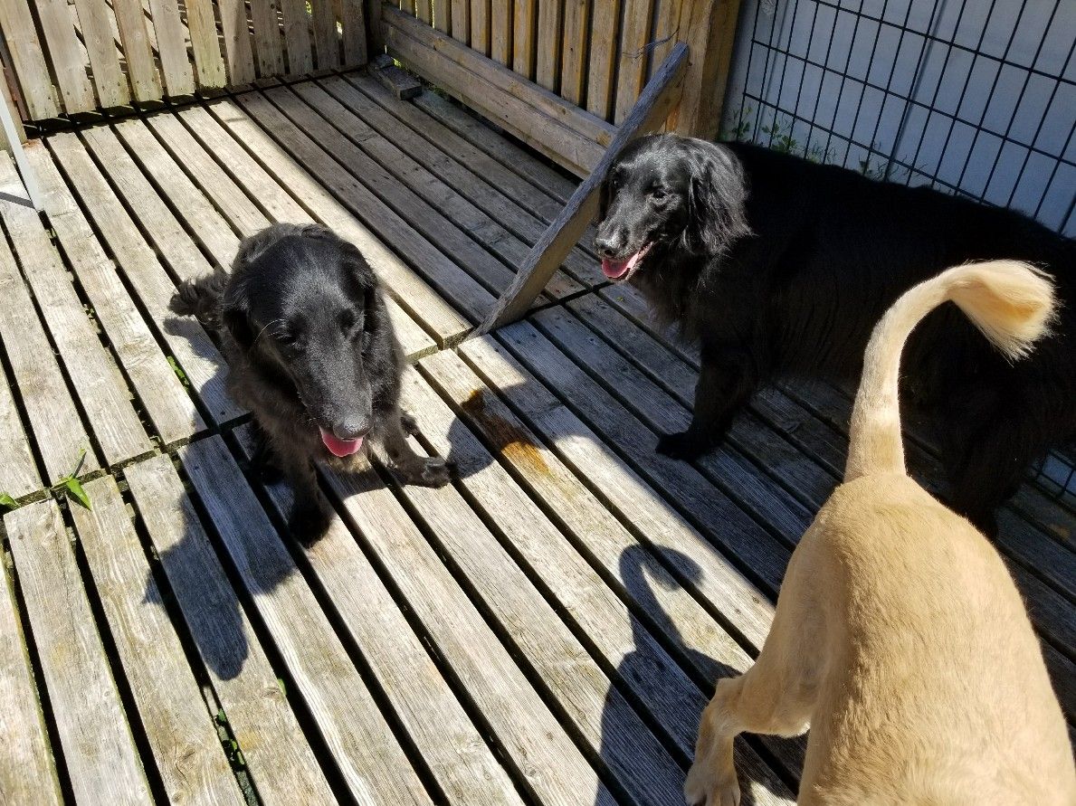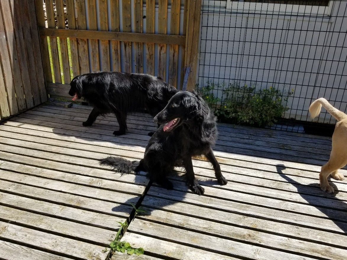 ハナちゃん大好き店長はすぐに抱っこして撫で撫で♪ ジョンくんはデッキでスタッフに構って構ってしています。 フラットが2匹になり、黒の集団は懐かしいなぁ~