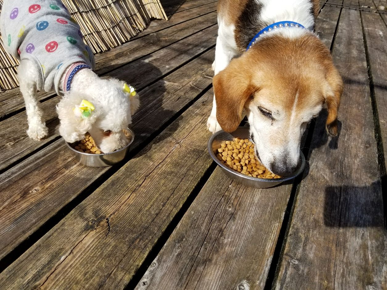 長期お預かりビーグルアンディーくん、ミックスくりっぷちゃんしっかり完食しました。