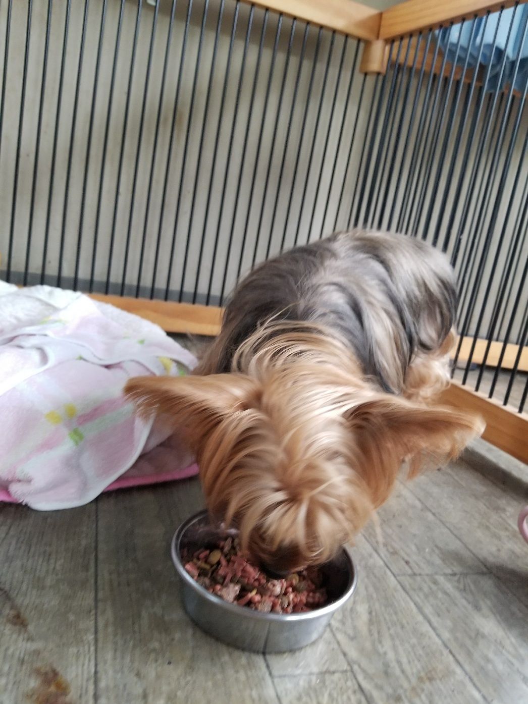 ヨーキーミニーちゃん少しだけ食べました。そのまま置いておきます。 昨晩のは完食してありました。