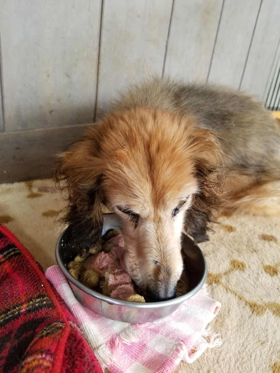 生涯お預かりダックスラブ君ゆっくり食べています。