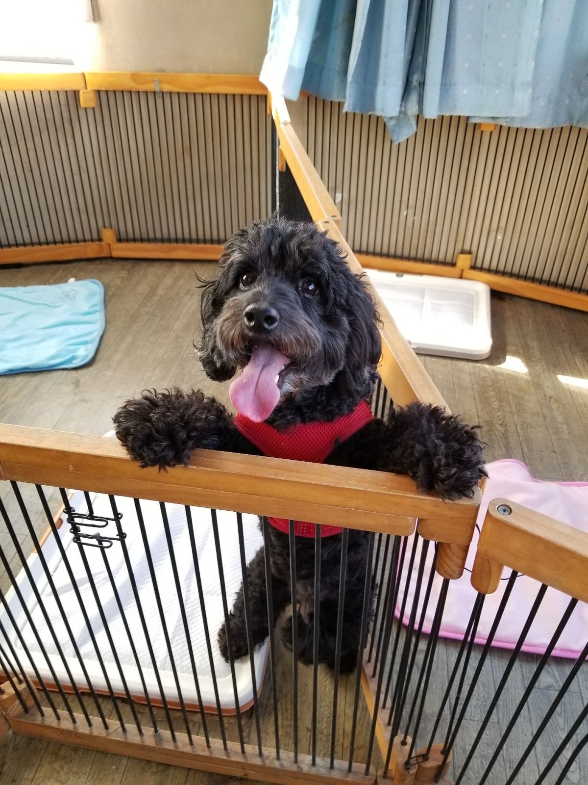 パディくんはサークルから出たがって大騒ぎなのですぐに出て店内を歩き回っています。