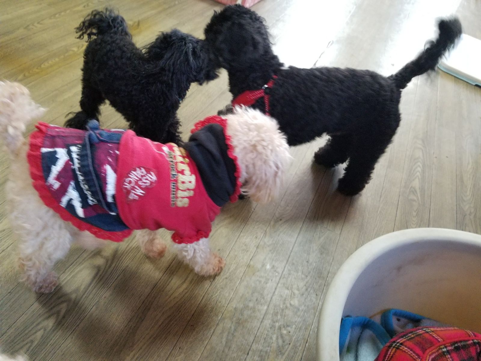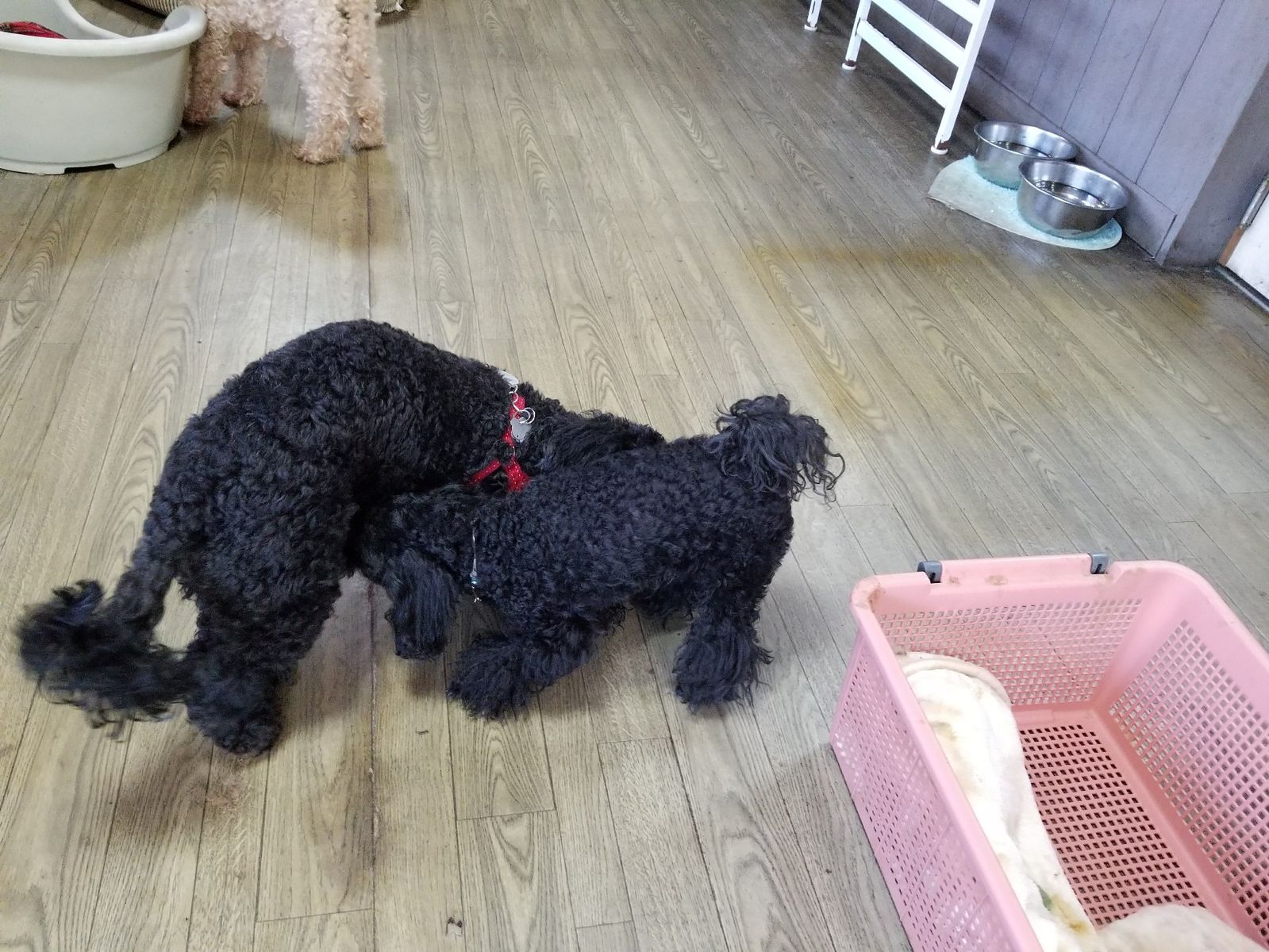 真っ黒わんちゃんが戯れているとどこが顔なのか分からず面白いです♪