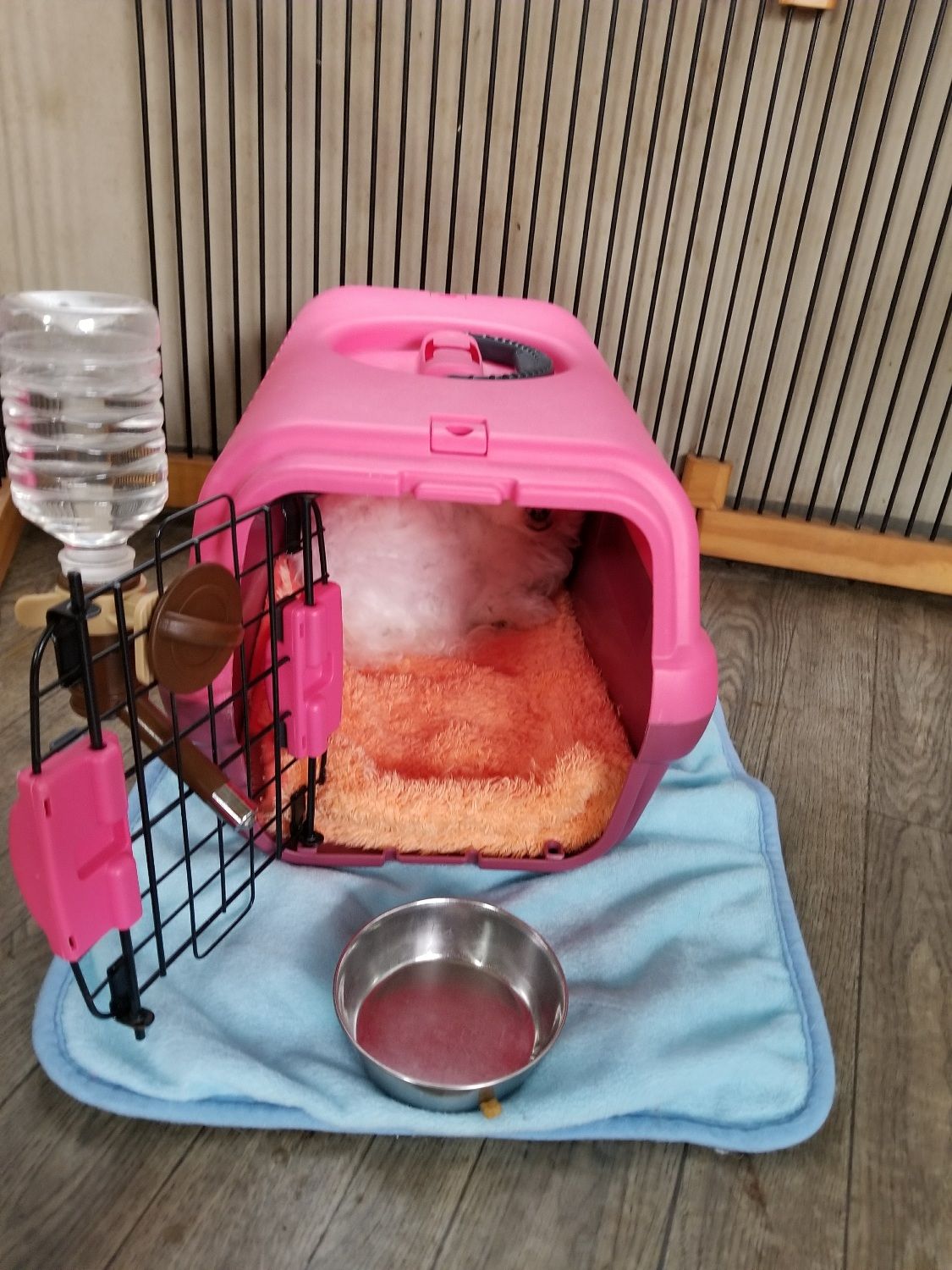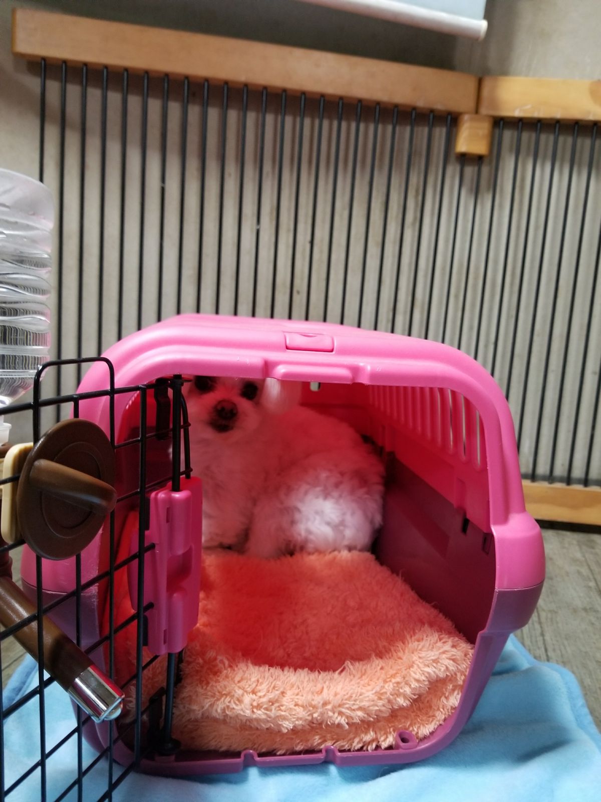 キャリーバッグの一番奥まで籠ってしまいました。 スタッフが近付くとヴーと唸るのであまり近寄らずそっとしておきます。