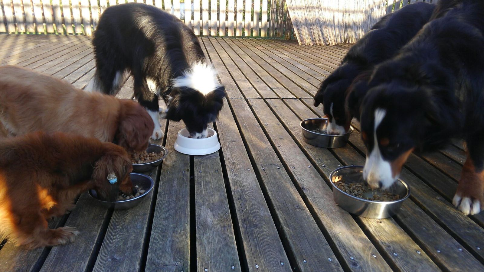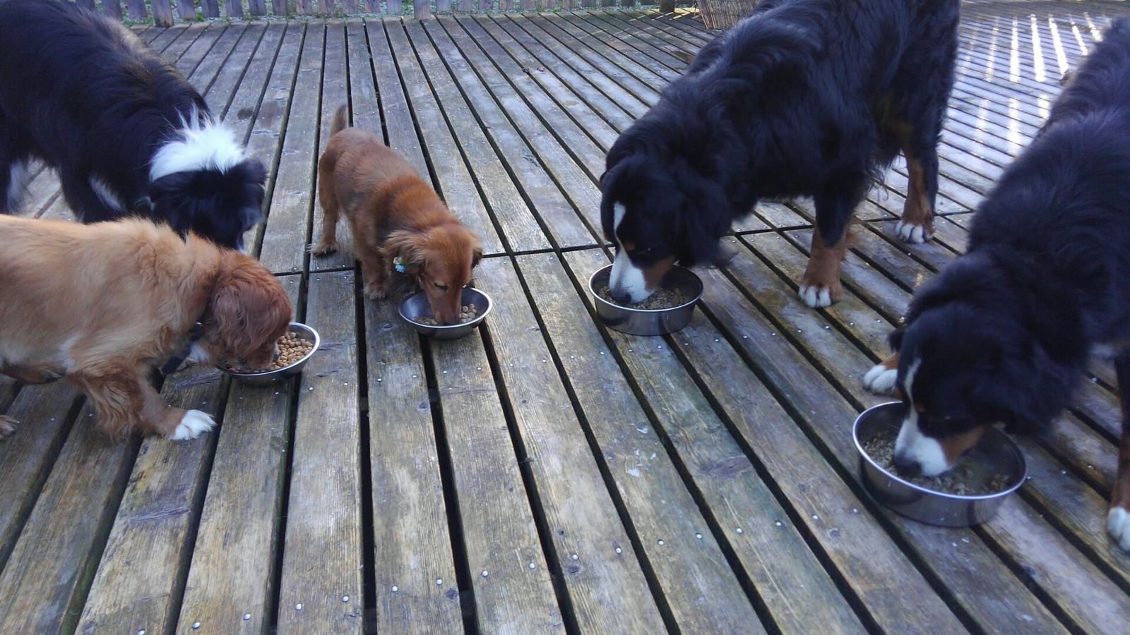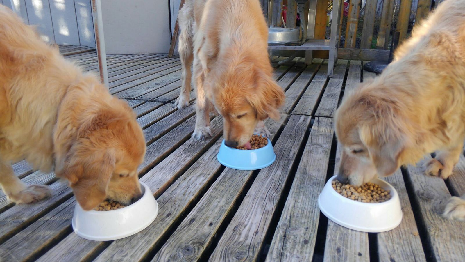 バーニーズマウンテンドッグのシンディちゃんとリンク君、ボーダーのリンちゃんしっかり完食しました。