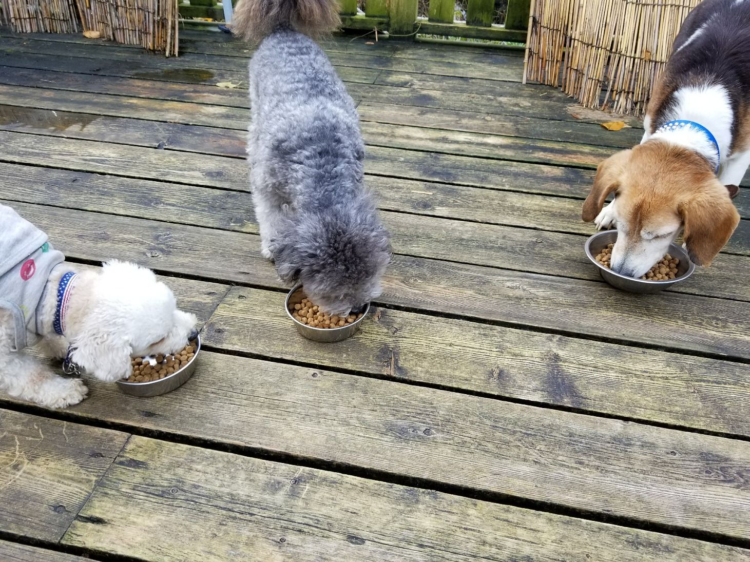 長期預かりトイプーむぅた君とミチゾー君とゆずちゃん、ビーグルアンディ君しっかり完食しました。