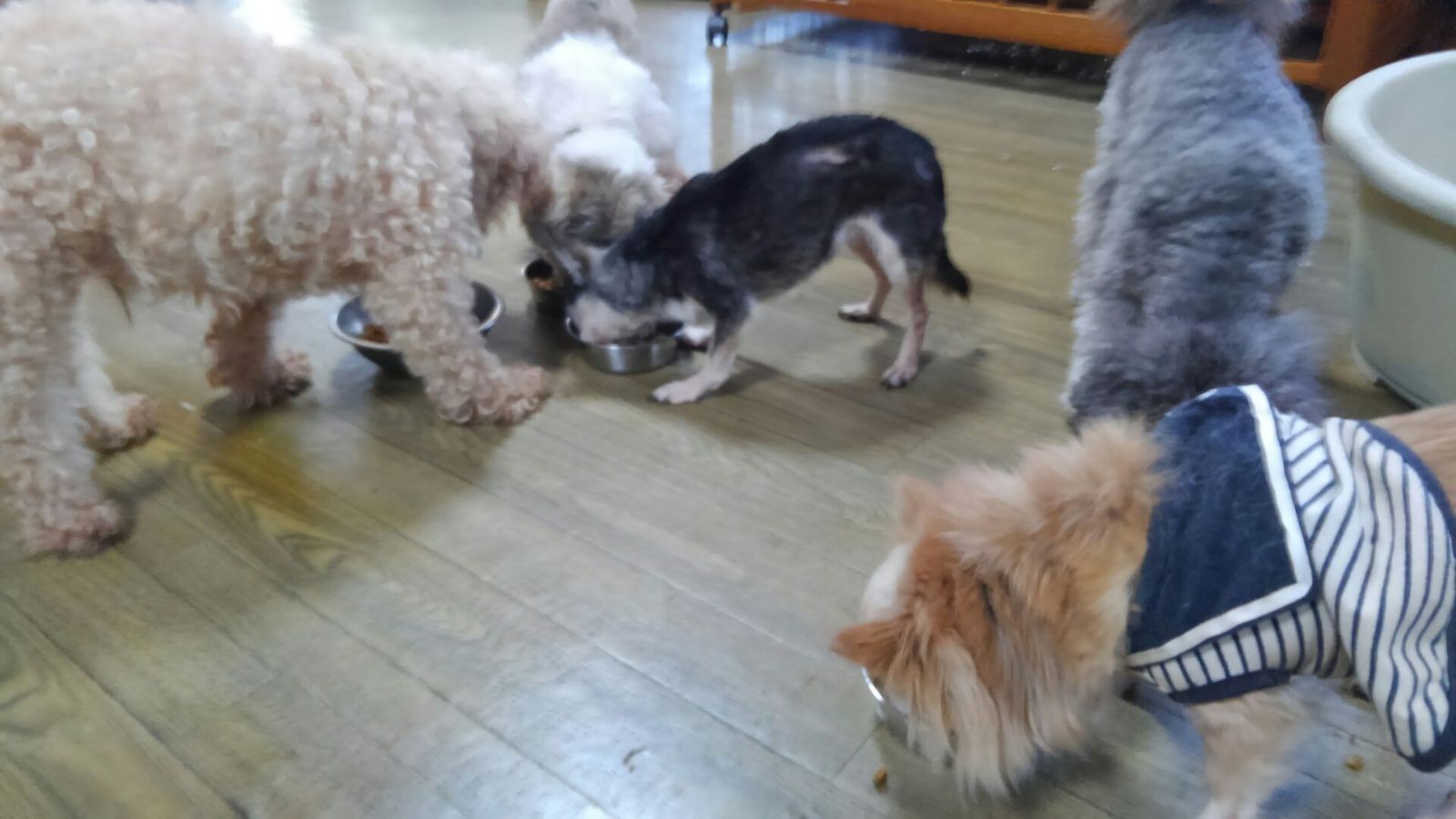 生涯預かりミックスのんちゃんとチビちゃんとキュウちゃん、シーズーココ君しっかり完食しました。