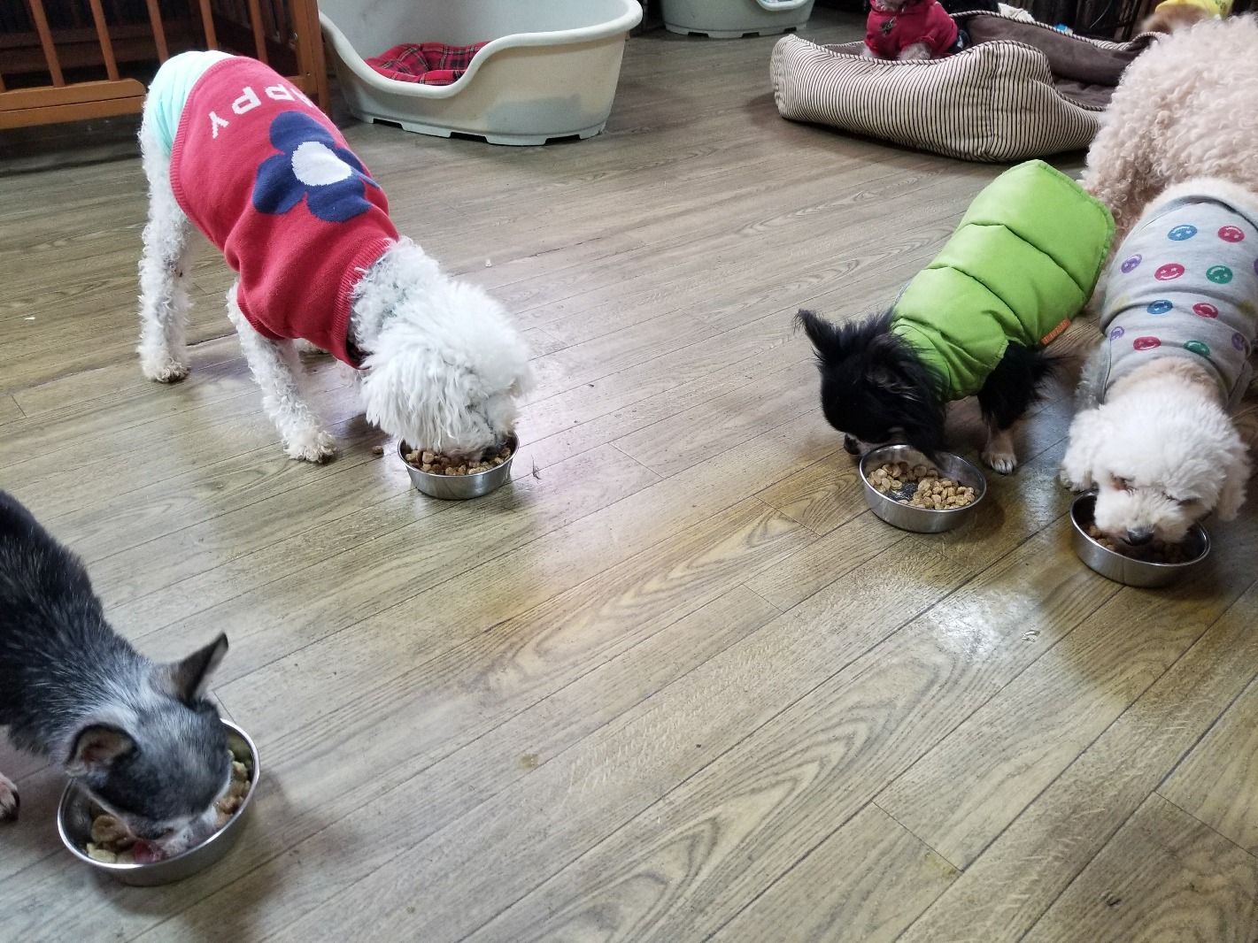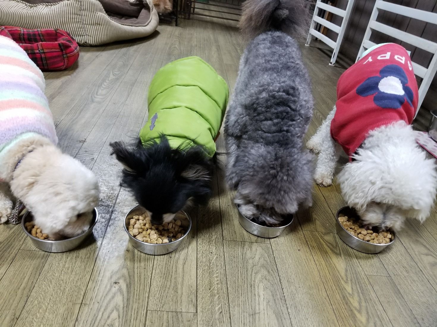生涯預かりトイプーテディ君とベラちゃん、チワワ秘めちゃんとビオラちゃん、しっかり完食しました。