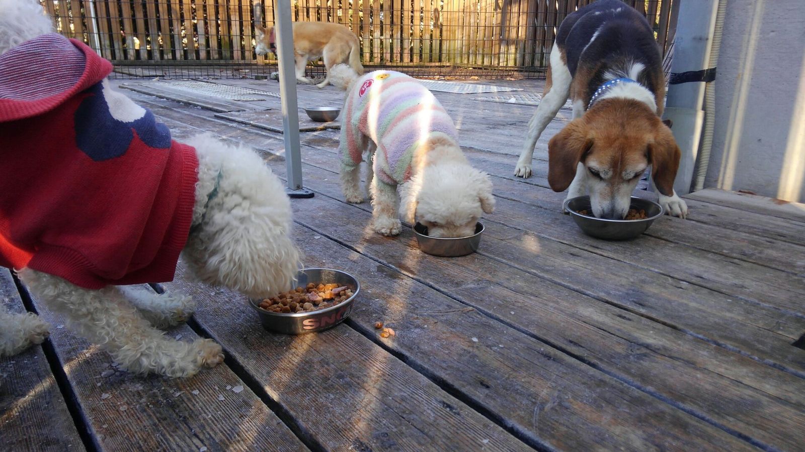 生涯預かりラブラドールアメリちゃんとシーズーココ君、ミックスのんちゃんとキュウちゃん、しっかり完食しました。