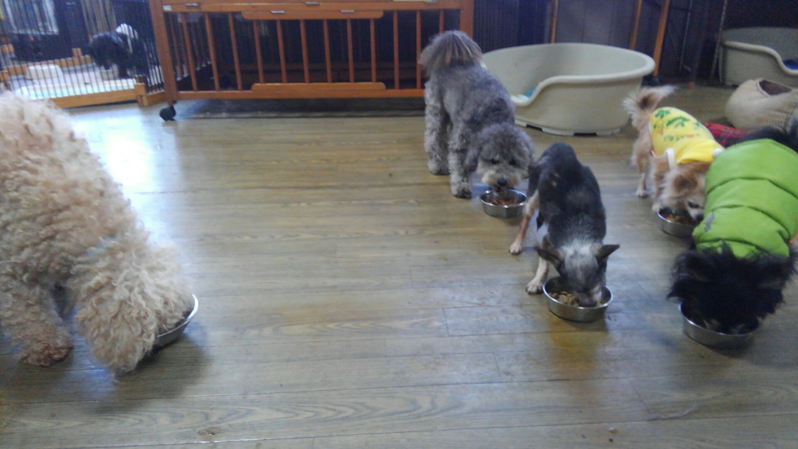 生涯預かり支払い凛ちゃんとミックスチビちゃんとケン君、ダックスロッキー君とティラミスのとラブ君、しっかり完食しました。