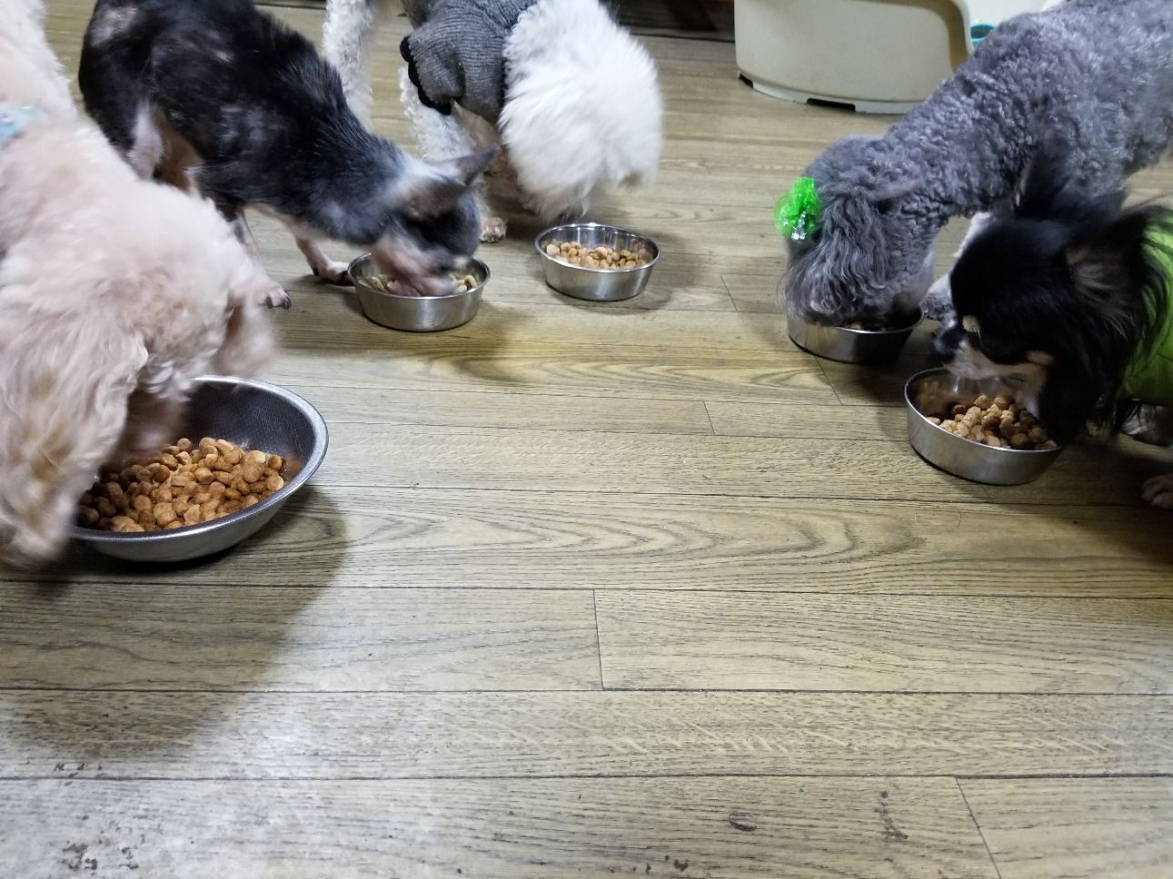 長期預かりトイプーむぅた君とミチゾー君とゆずちゃん、チワワバロン君とビークルアンディ君、しっかり完食しました。