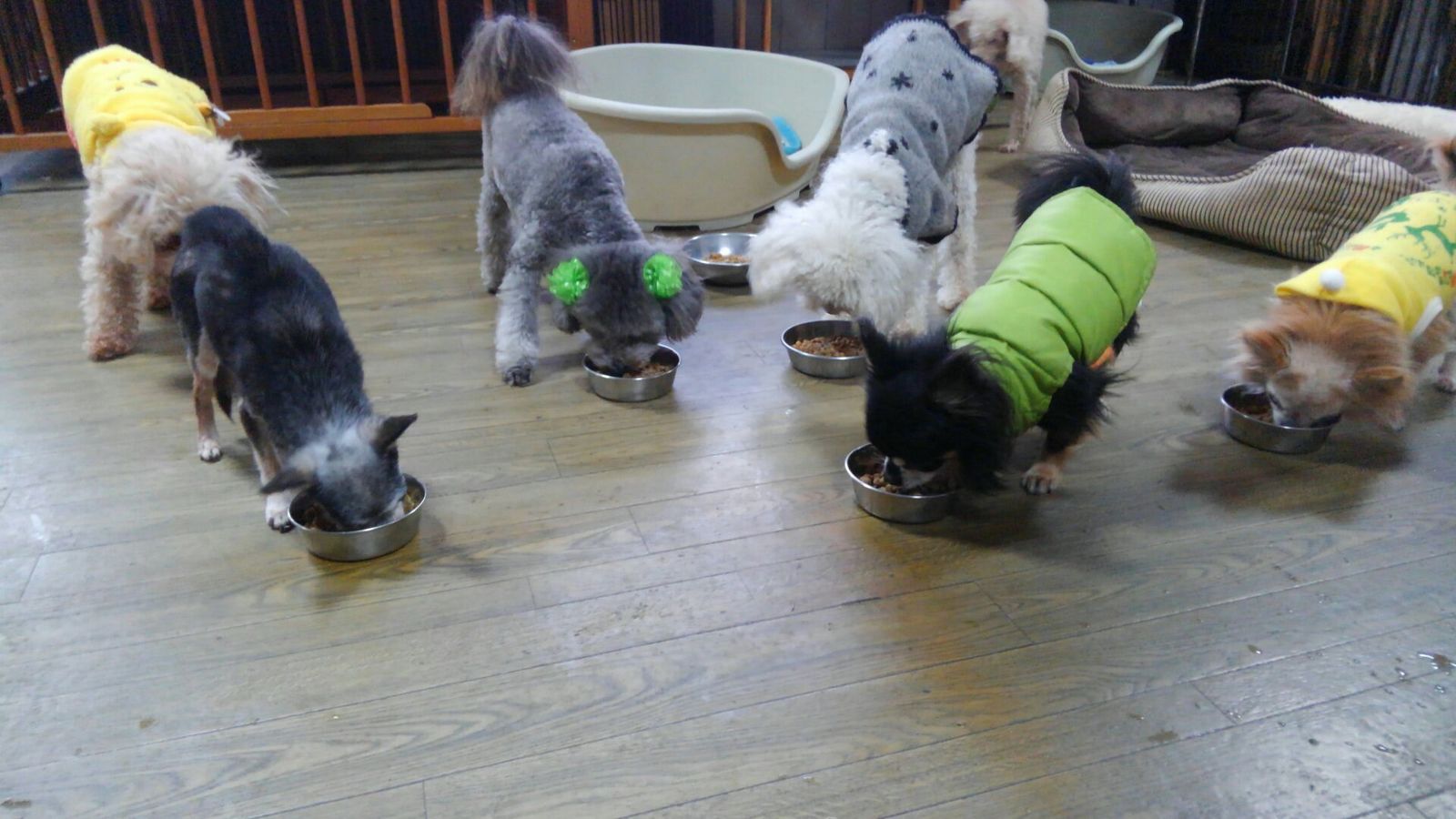 長期預かりトイプーむぅた君とミチゾー君とゆずちゃん、チワワバロン君とビーグルアンディ君、しっかり完食しました。