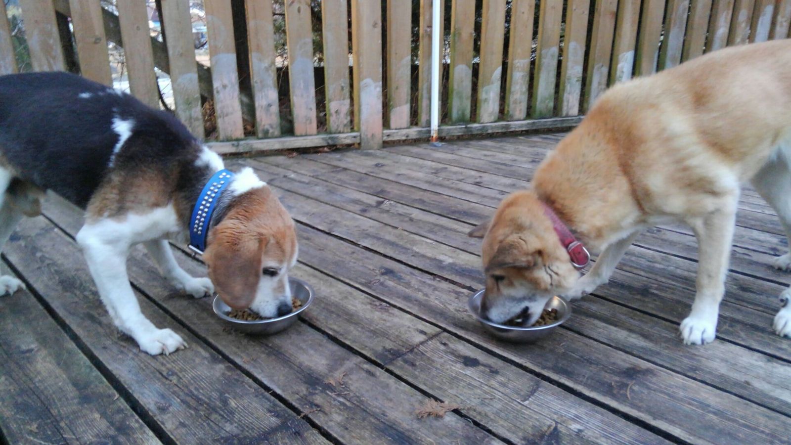 生涯預かりラブラドールアメリちゃんとミックスケン君、のんちゃんとキュウちゃん、しっかり完食しました。