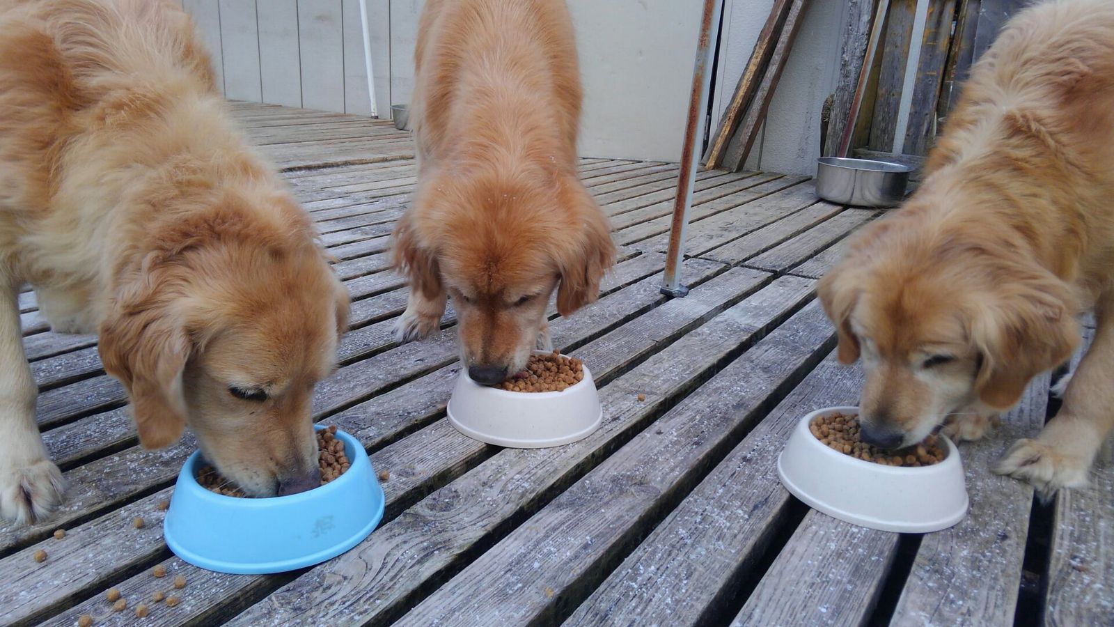 長期預かりゴールデンジョジヨ君と小太郎君、キャバリア大吉君しっかり完食しました。