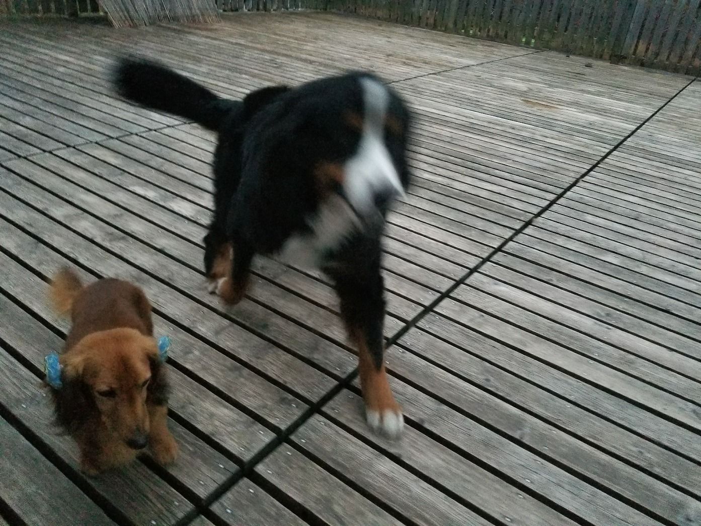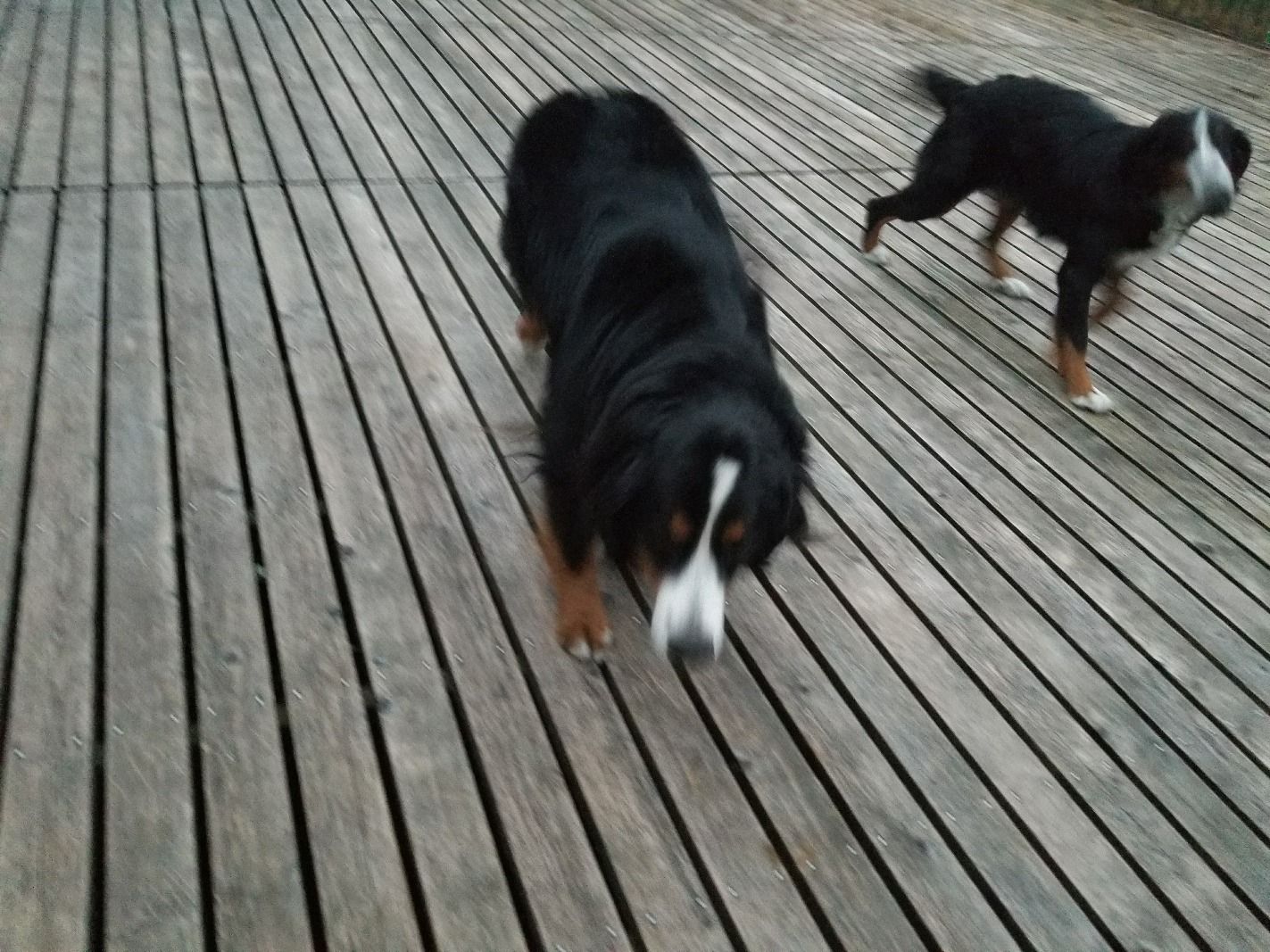 常連さんのバーニーズ親子シンディちゃんとリンク君がチェックインしました。