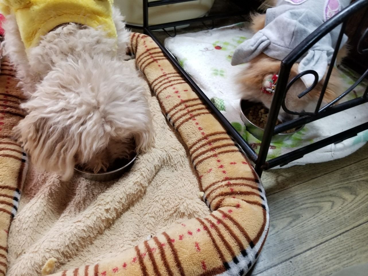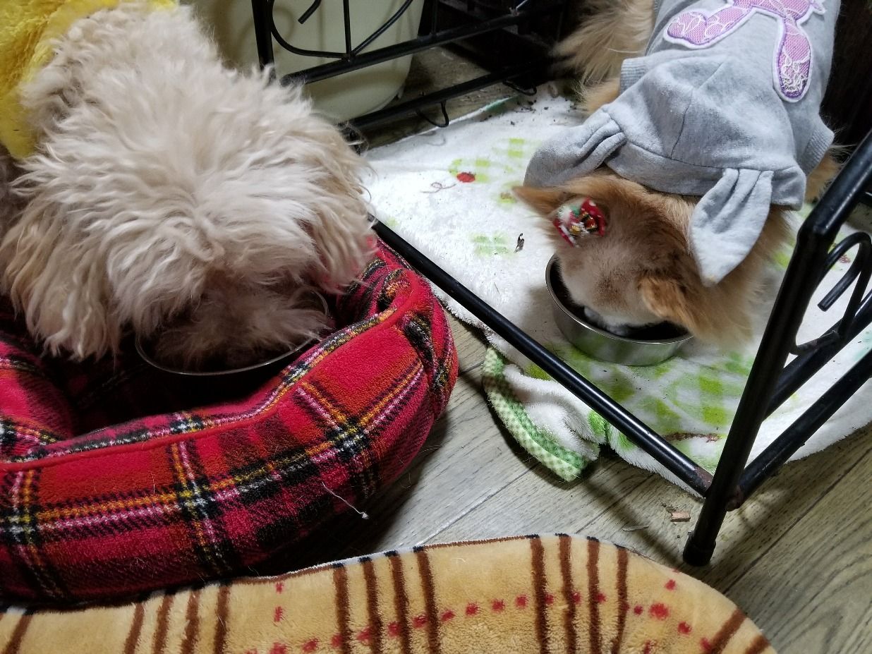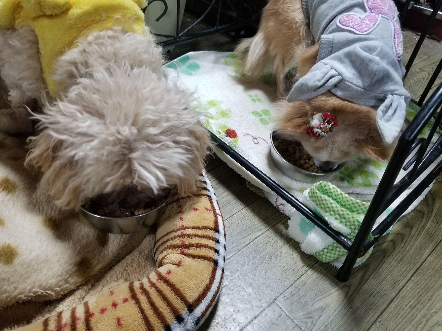 生涯お預かりチワワ姫ちゃん、シーズーココくんしっかり完食しました。
