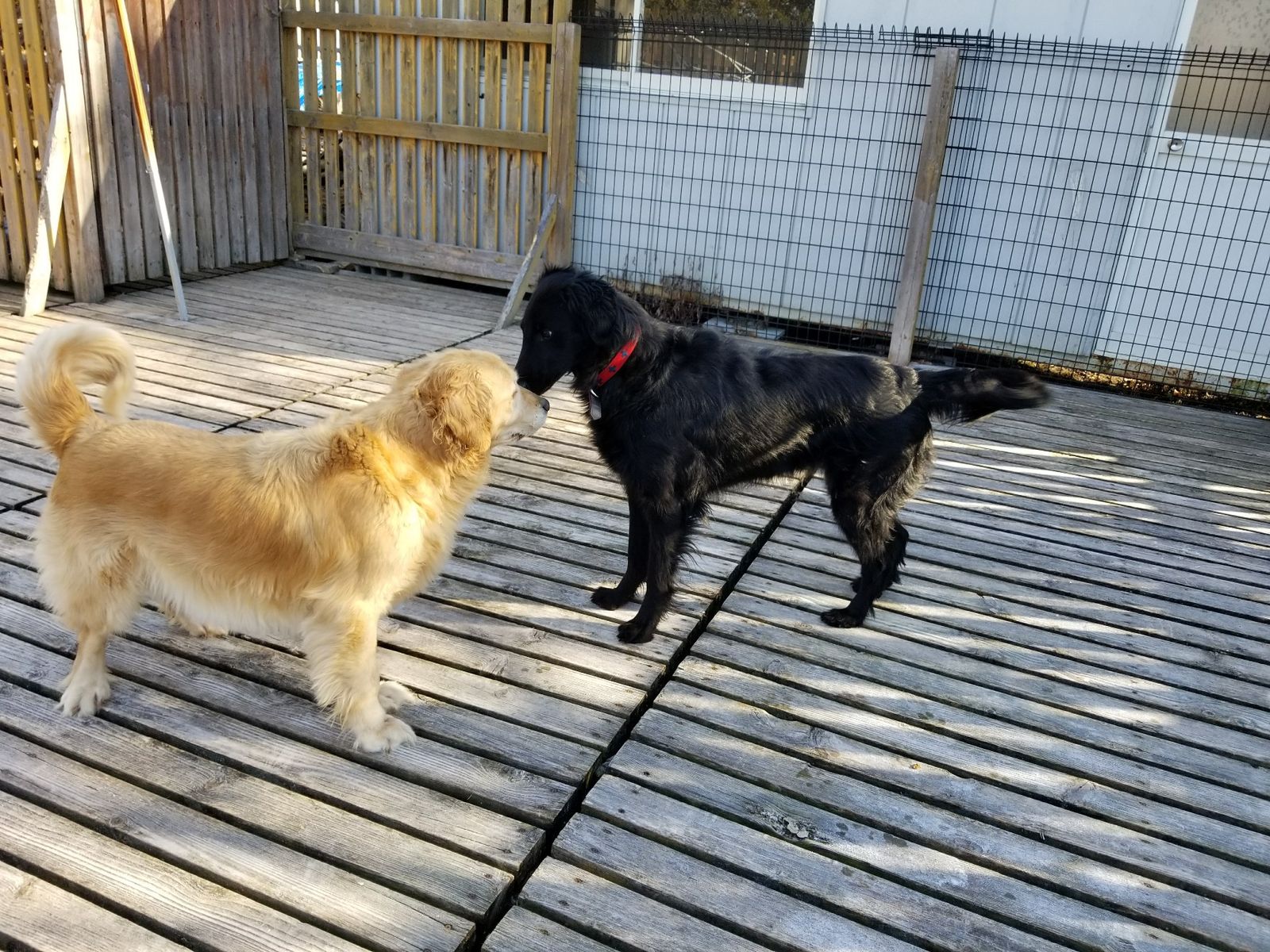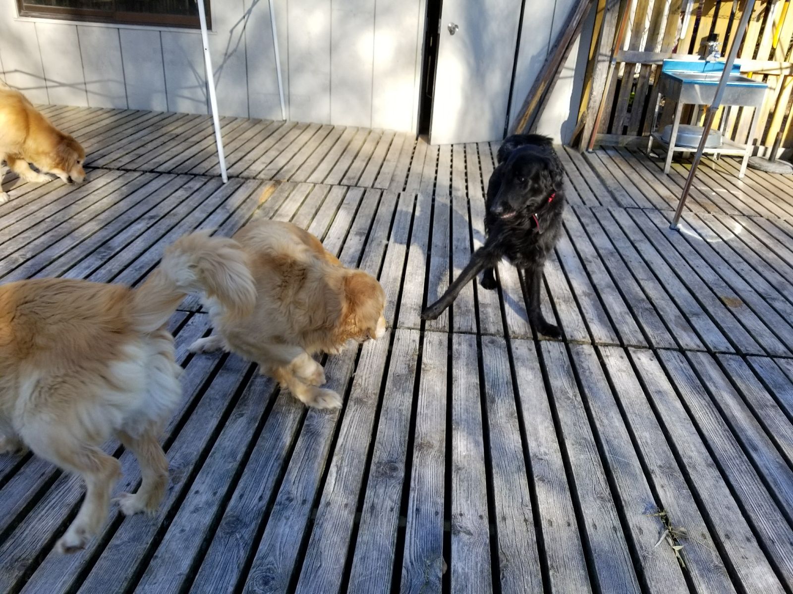 ゴールデンズとじゃれあったり、スタッフに甘えたりしています。 キューちゃんはいつも楽しそうに過ごしてくれますね♪