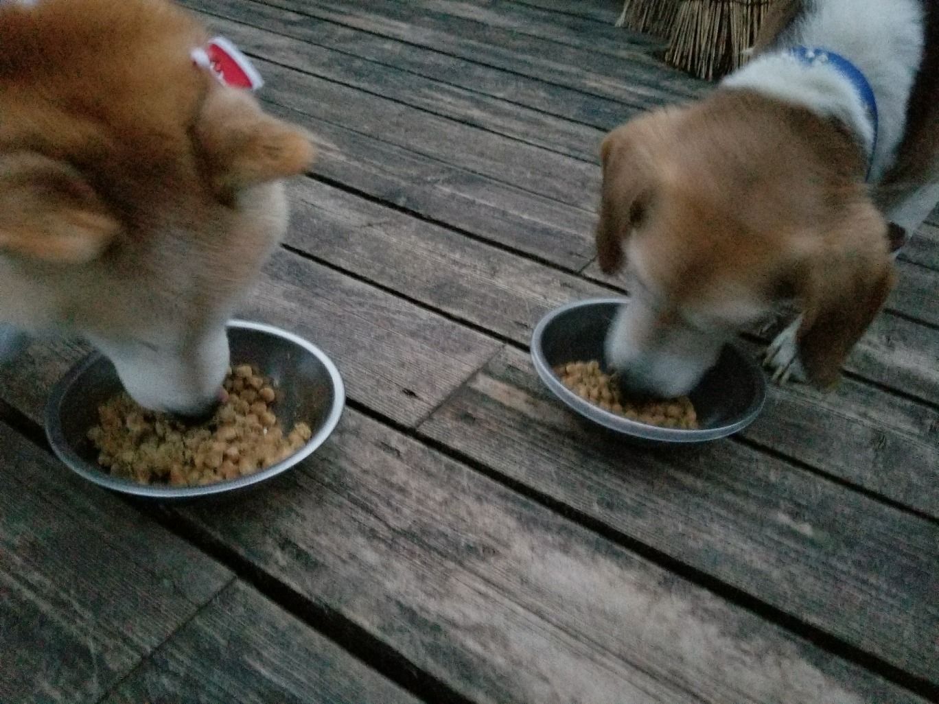 生涯お預かりビーグルアンディーくん、柴犬凜ちゃんしっかり完食しました。