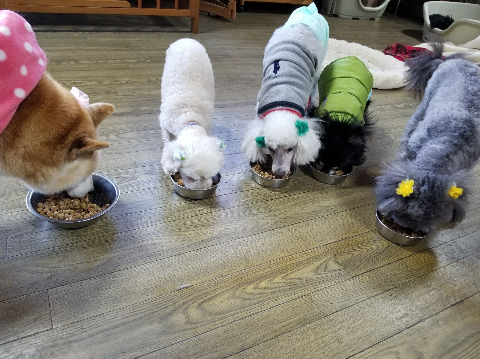 生涯預かり柴凛ちゃんとシーズーココ君、トイプーテディ君とベラちゃん、チワワ姫ちゃんしっかり完食しました。