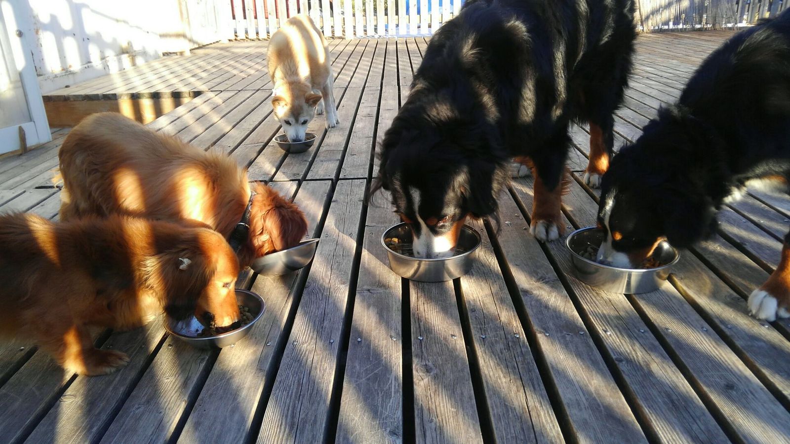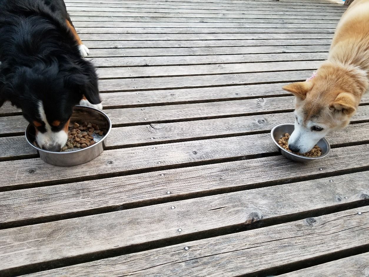 バーニーズマウンテンドッグのシンディちゃんとリンク君、しっかり完食しました。