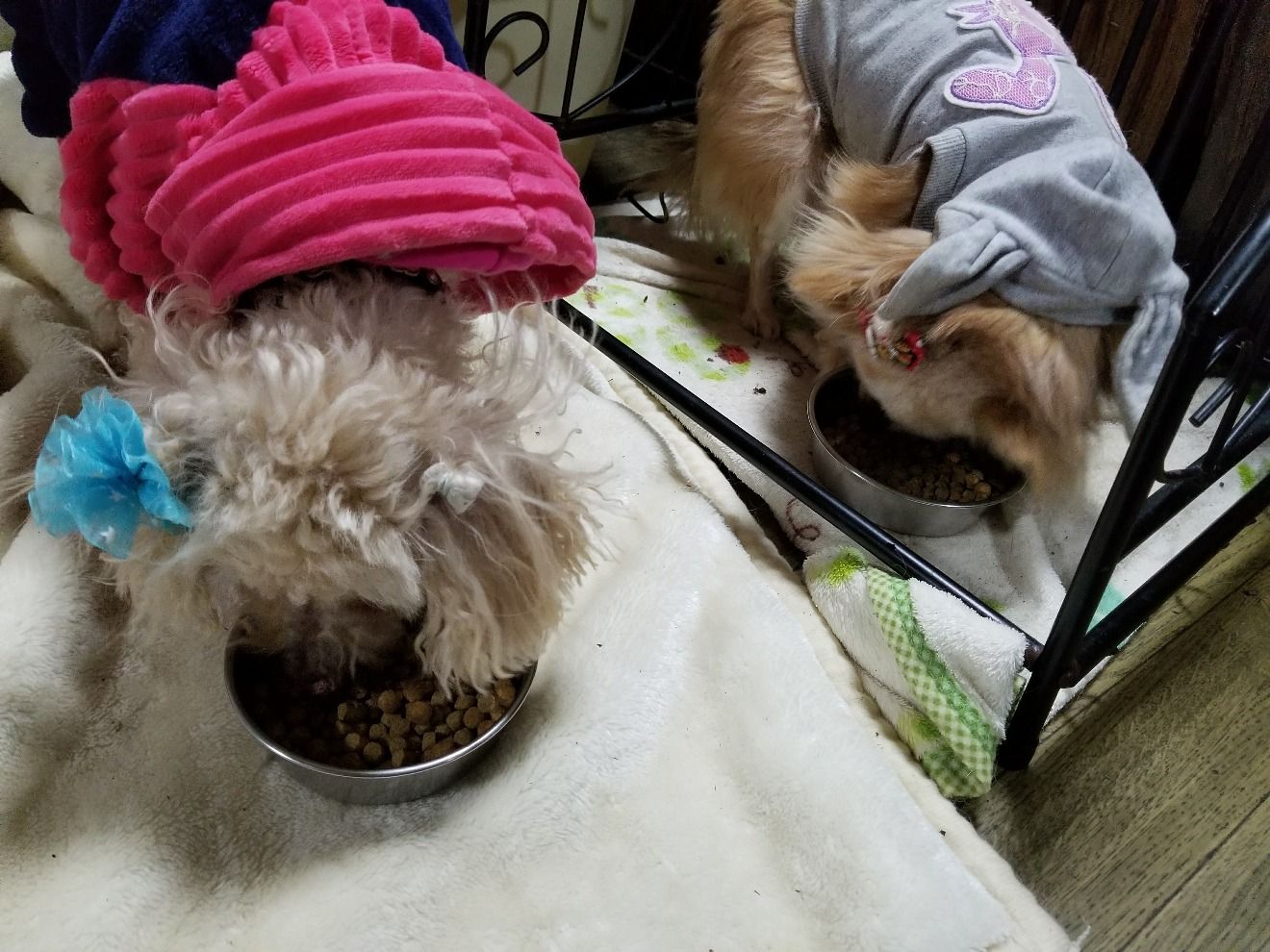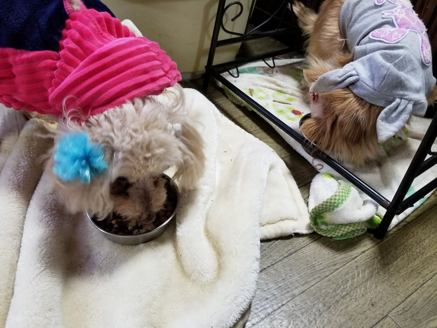 生涯お預かりチワワ姫ちゃん、シーズーココくんしっかり完食しました。