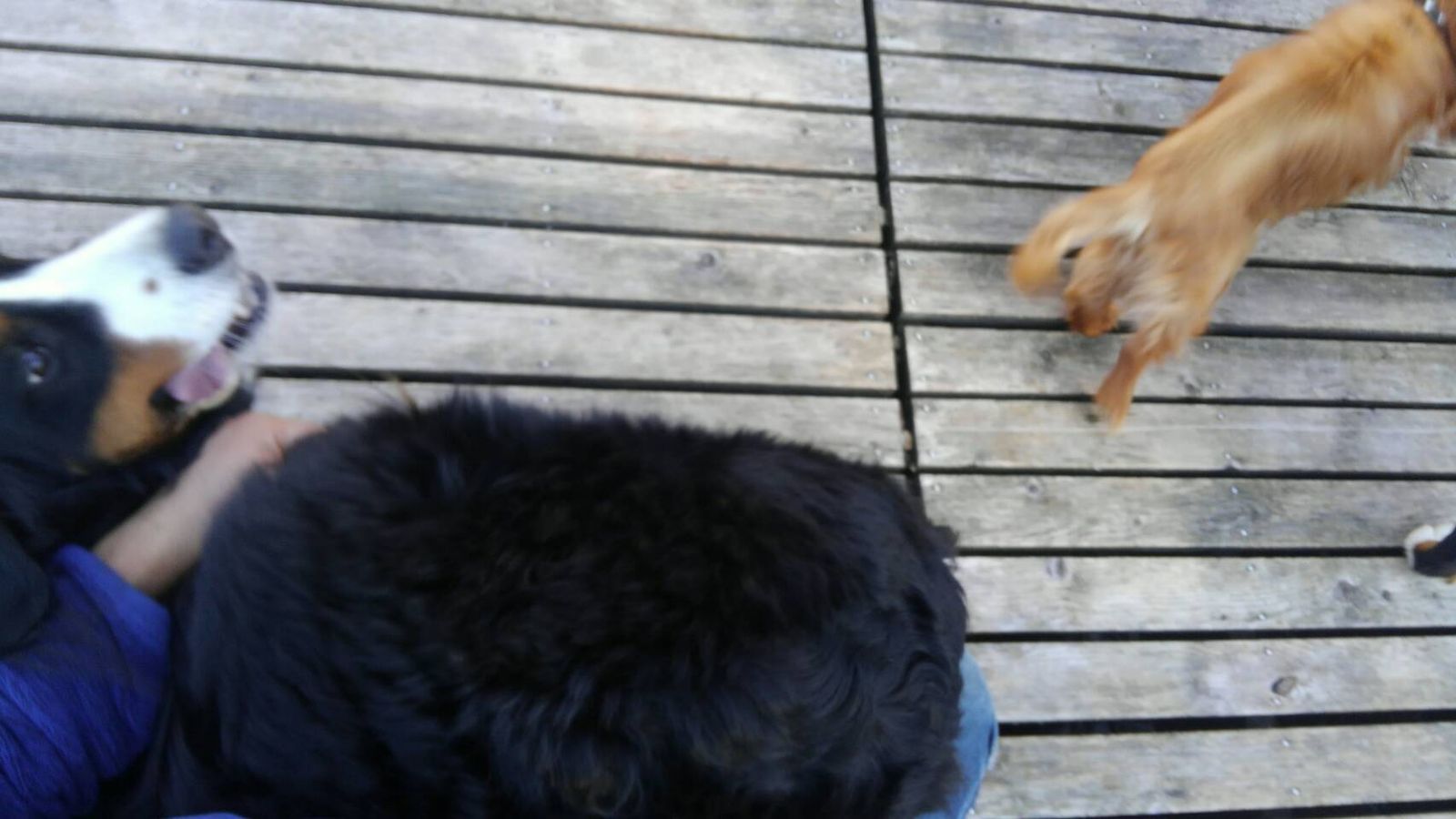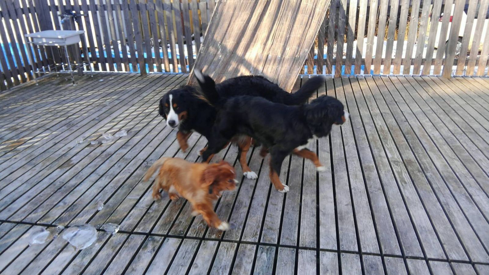 常連さんのバーニーズ親子シンディちゃん、リンク君がチェックインしました。