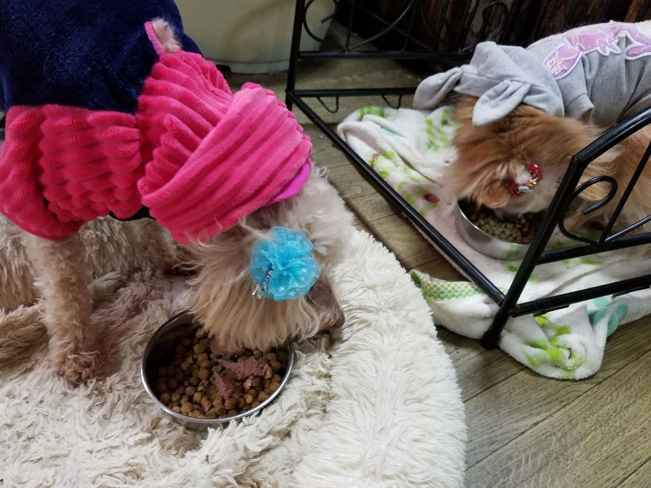 生涯お預かりチワワ姫ちゃん、シーズーココくんしっかり完食しました。